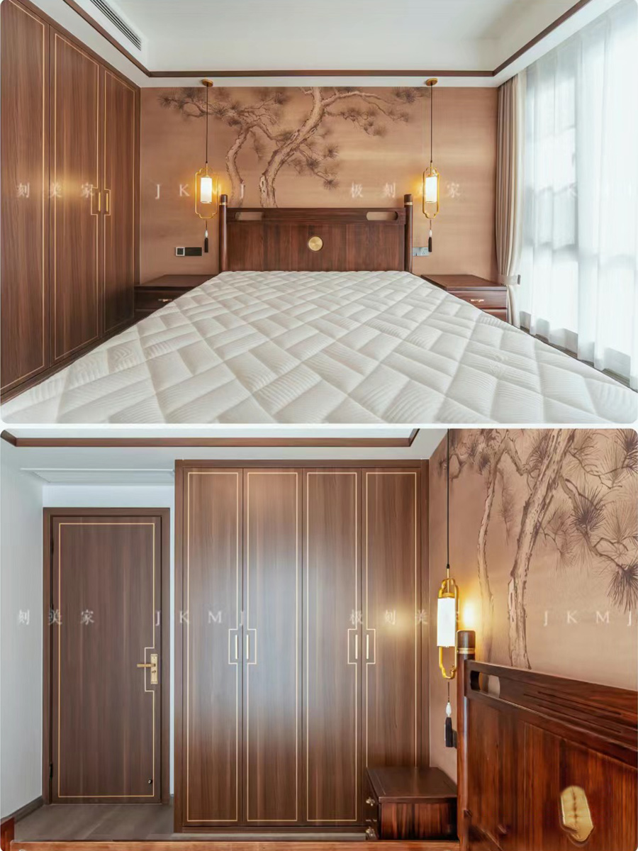 客廳和臥室都采用了水墨畫中式背景墻,展示出濃濃的東方韻味