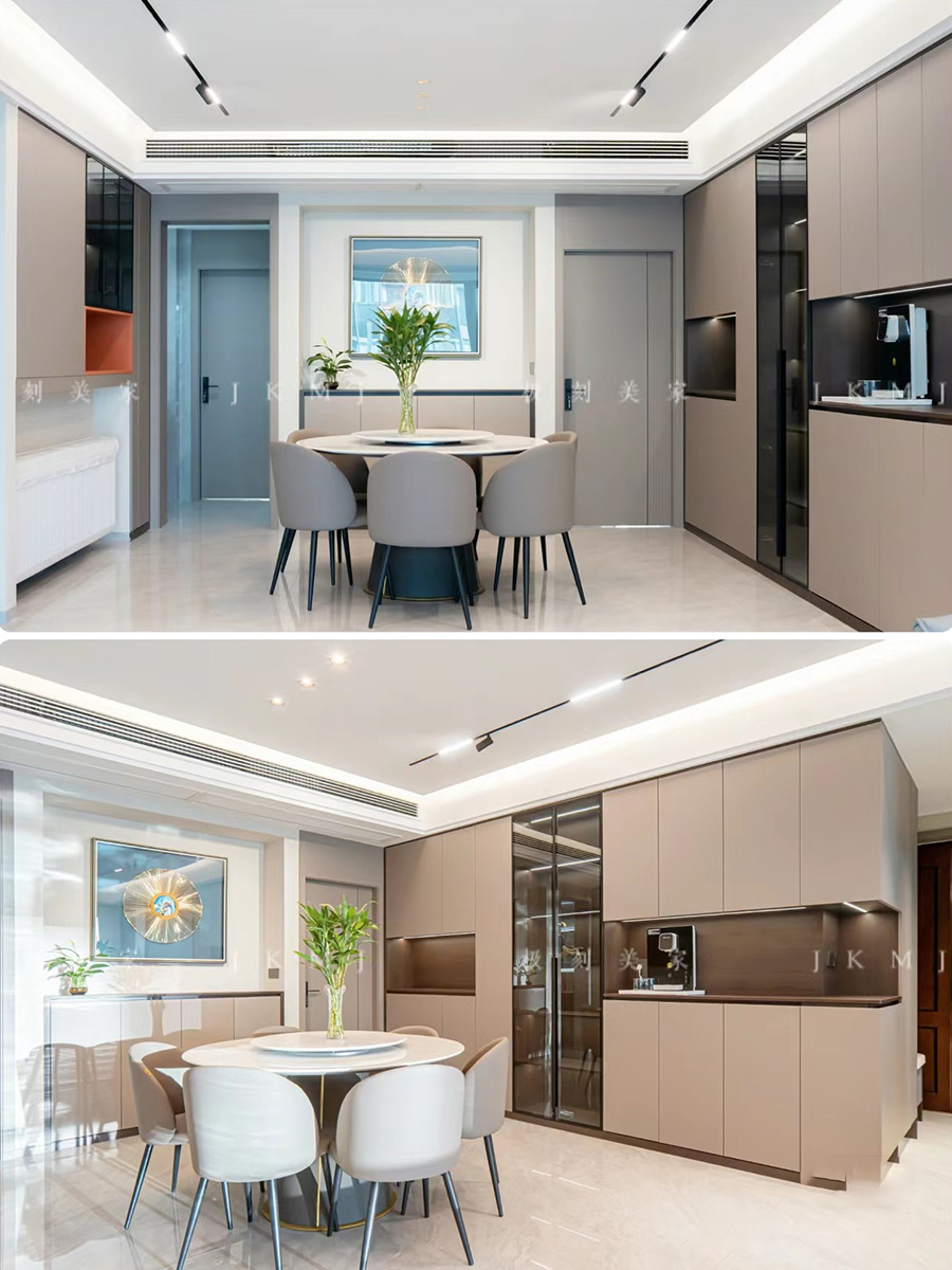 全屋高端定制:柜體板材18厚杉木實芯板,柜門有pet膚感、高光、超晶、五金使用原裝進口奧地利百隆五金