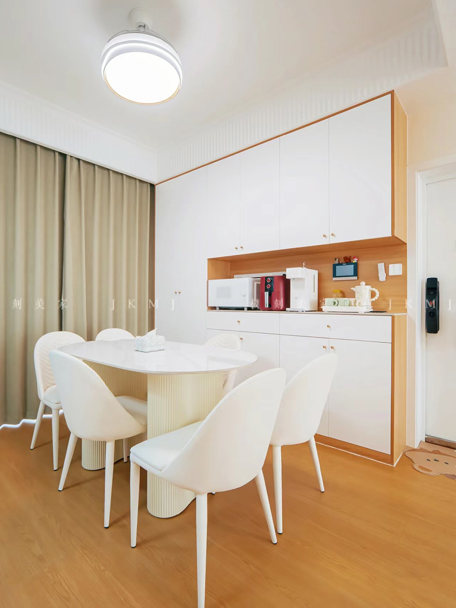 整體色調整體和諧統(tǒng)一,搭配白色家具作為輔色,整體空間顯得更豐富