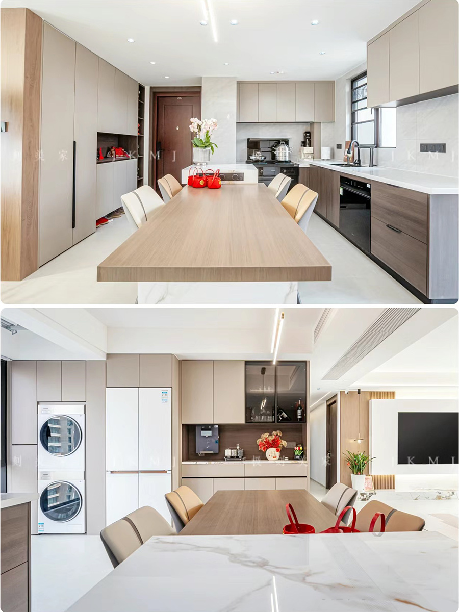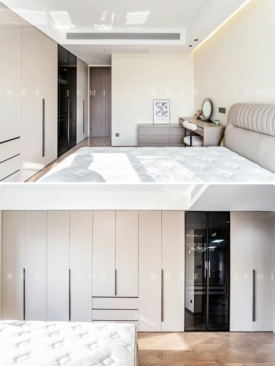全屋高端定制:柜體板材18厚杉木實芯板,柜門有pet膚感、高光、超晶、五金使用原裝進口奧地利百隆五金