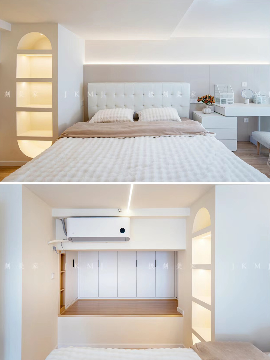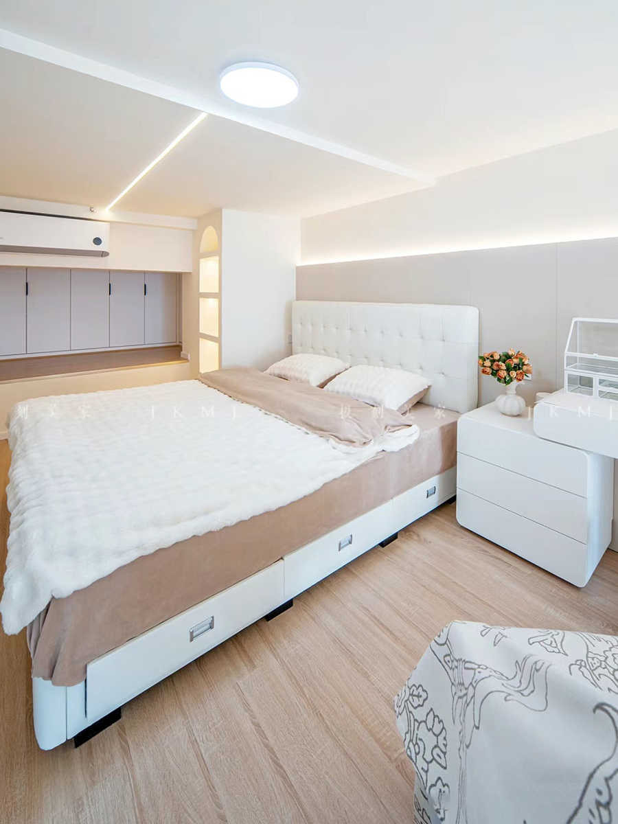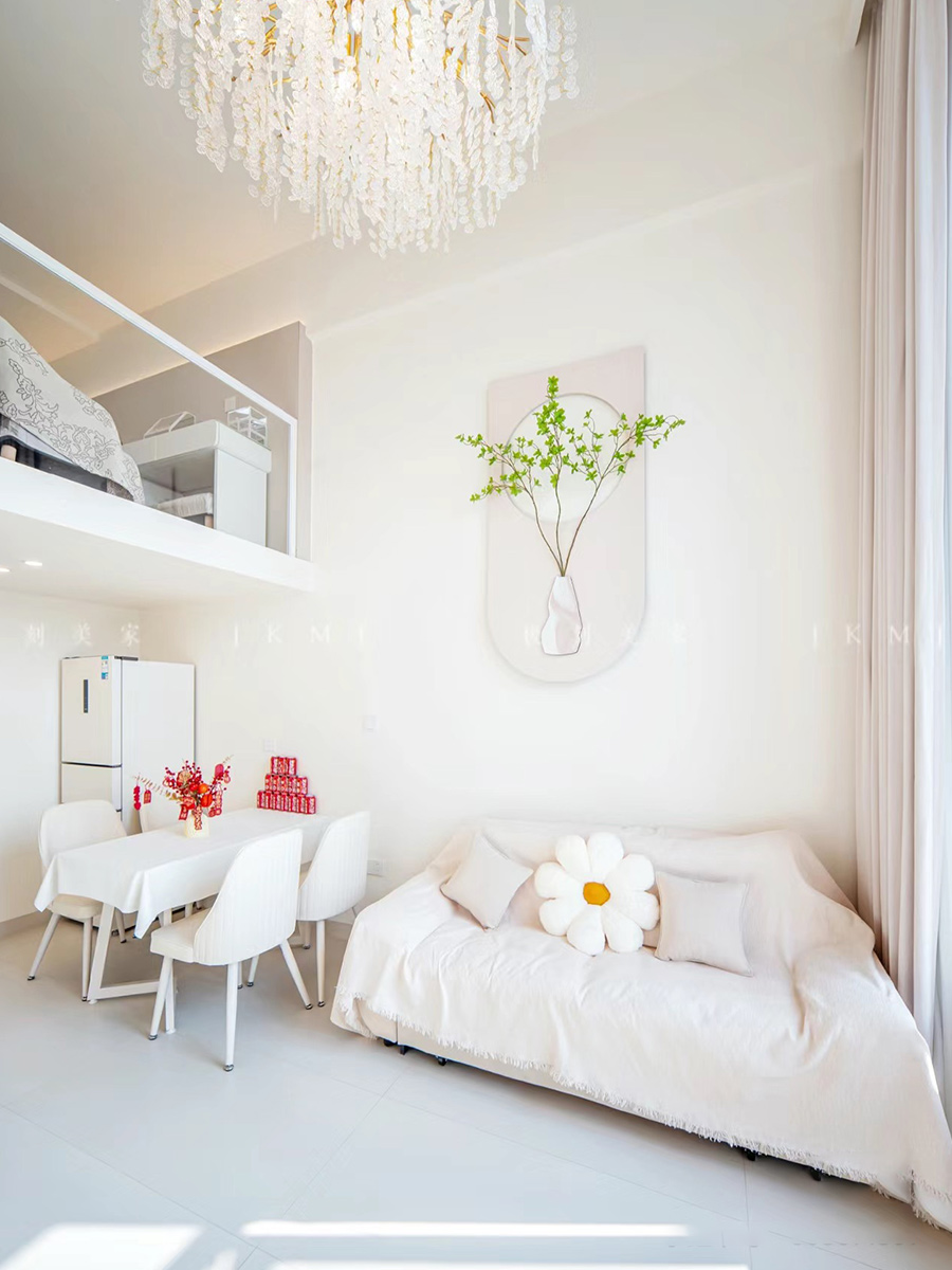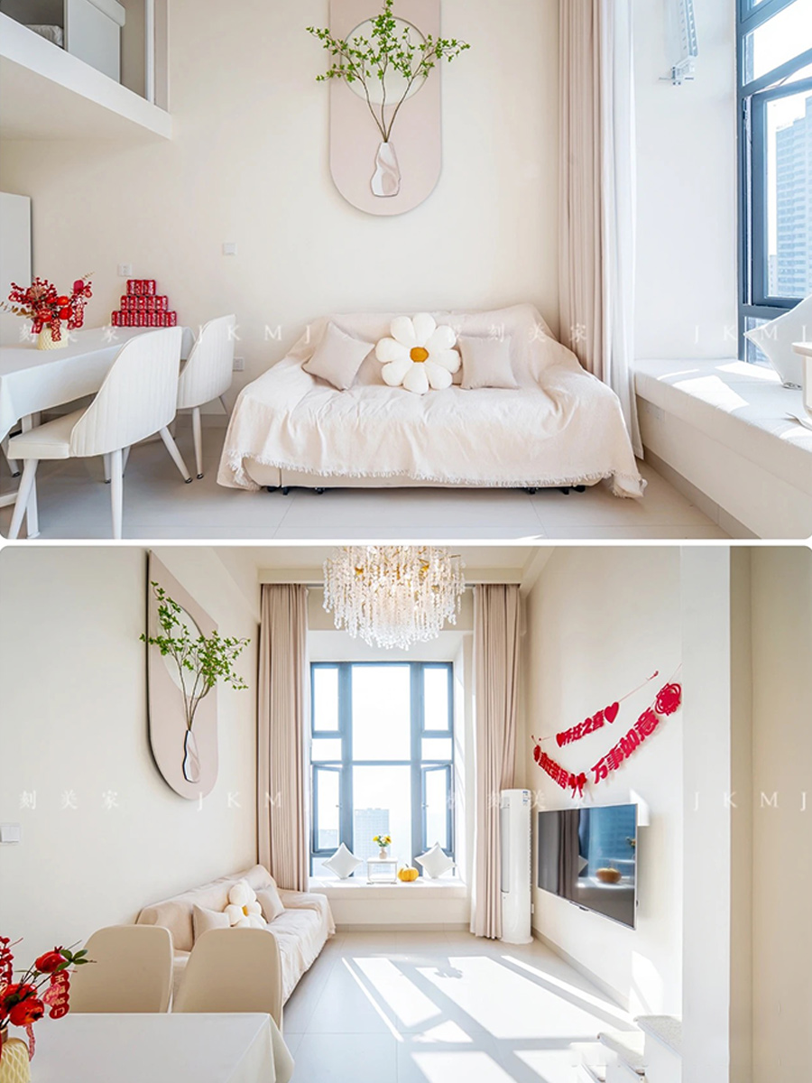 全屋以奶油色為基調(diào),搭配淺色家具,沙發(fā)連接飄窗,休閑娛樂get