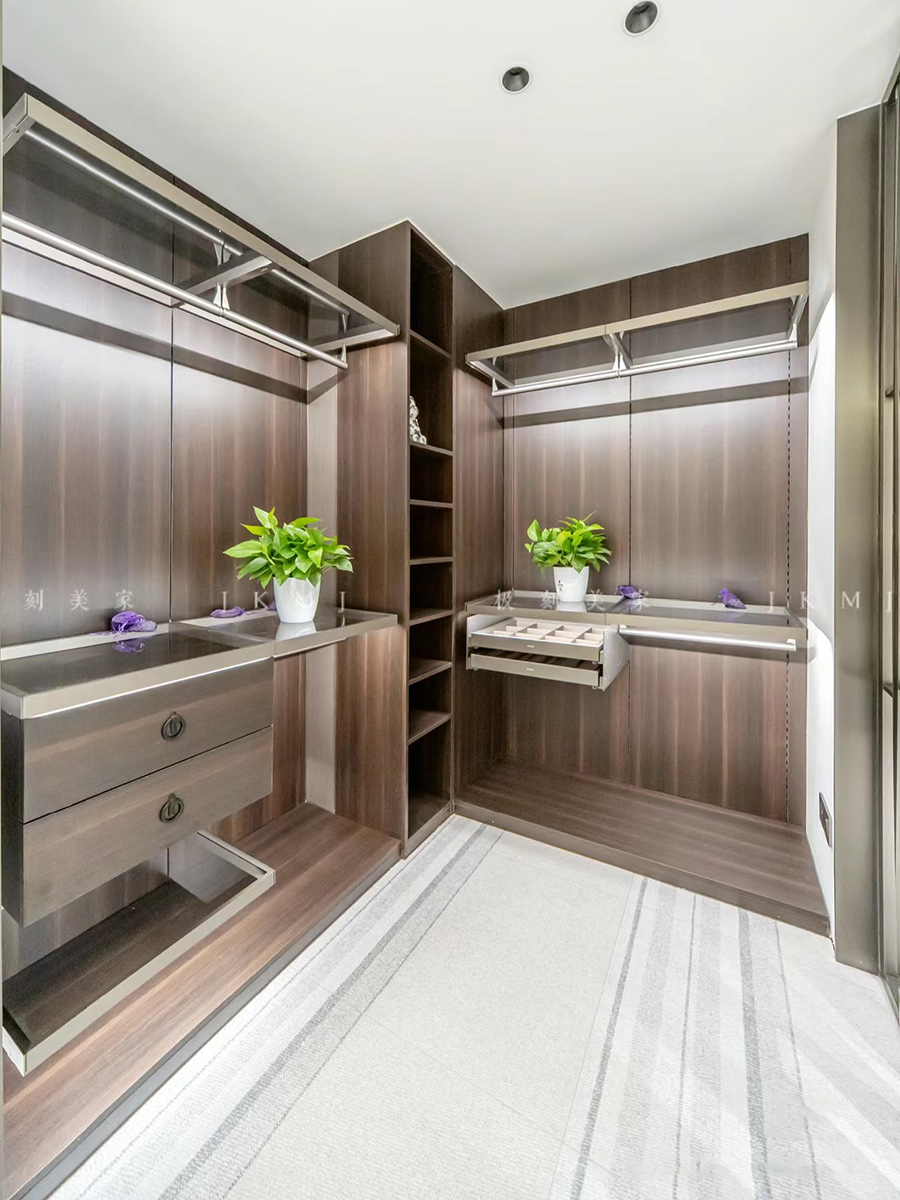 主臥做木質(zhì)開放衣帽柜結(jié)合鋼架結(jié)構(gòu)開放式設(shè)計(jì),打破傳統(tǒng)格式