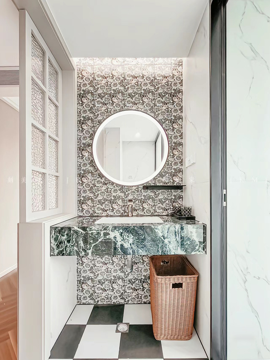 浴室柜大面積運(yùn)用花磚,造型吸睛,讓人眼前一亮