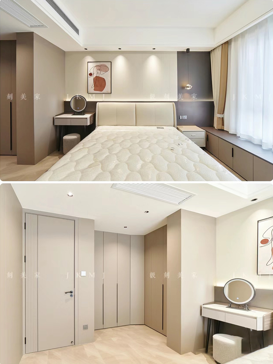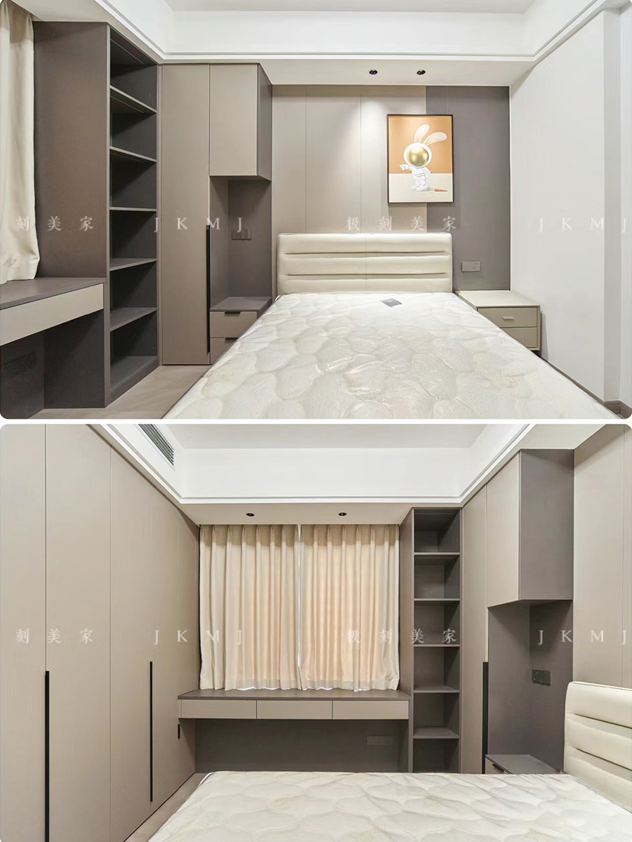 臥室采用滿墻柜子,滿足業(yè)主的收納需求