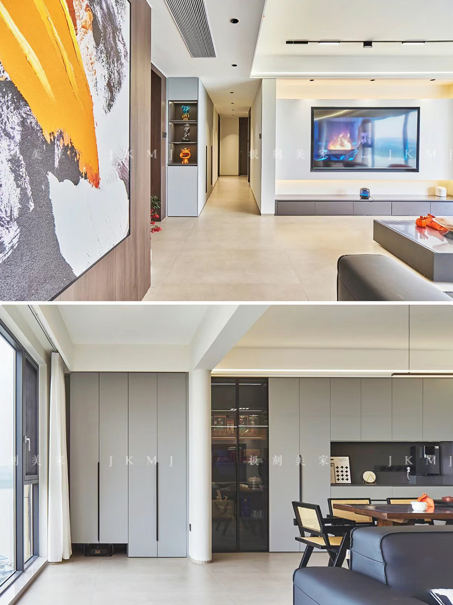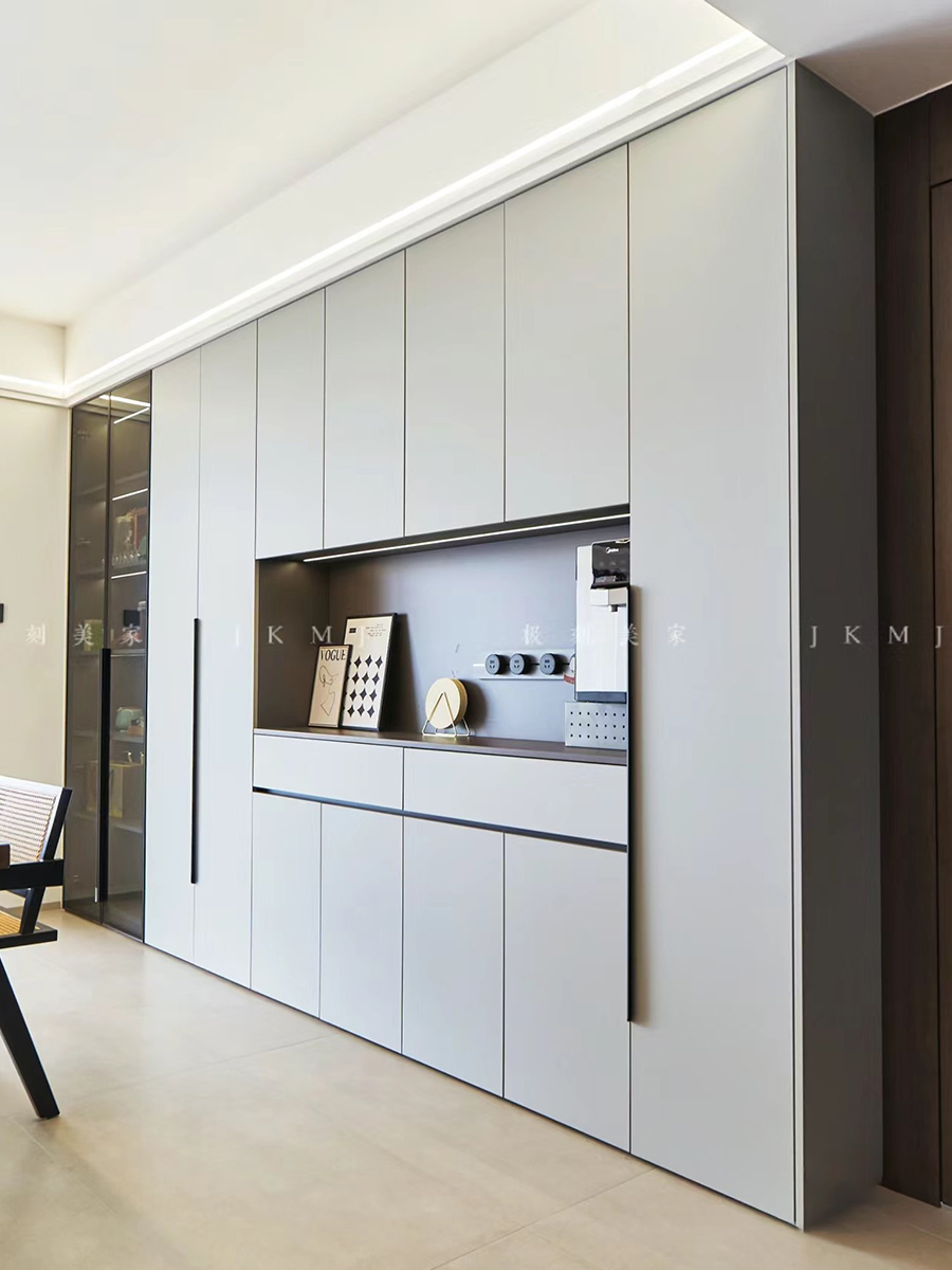 全屋高端定制:柜體板材18厚杉木實(shí)芯板,柜門(mén)有pet膚感、高光、超晶,五金使用原裝進(jìn)口奧地利百隆五金