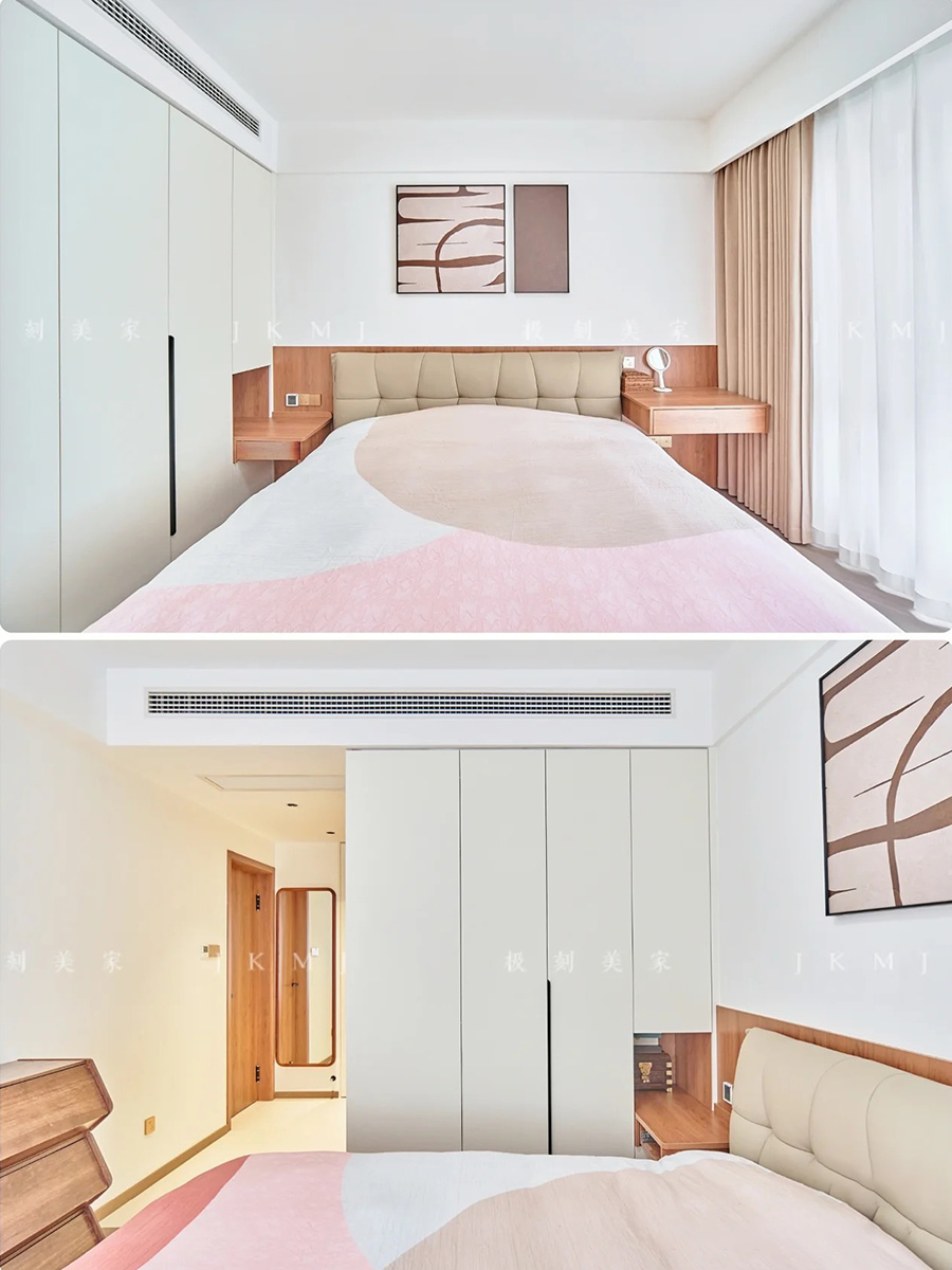 整體運用胡挑木和珍珠白,二者相互呼應(yīng),簡單又高級