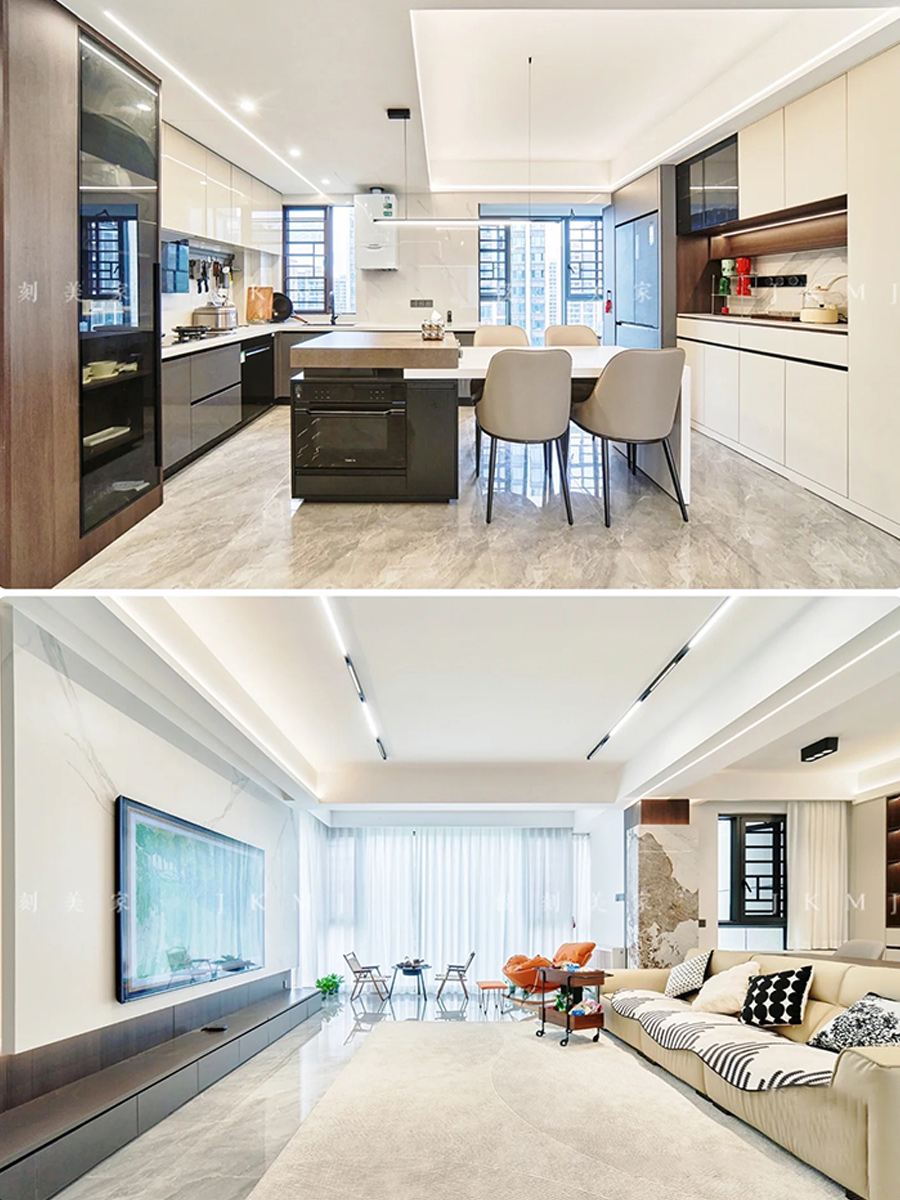 聯(lián)通廚房+餐廳+生活陽臺,視覺感官上更有大平層的既視感