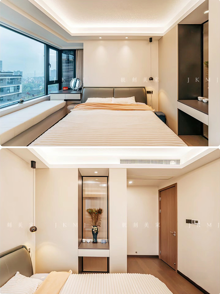 主臥用屏風(fēng)做隔斷,充滿設(shè)計(jì)感,實(shí)用又高級(jí)