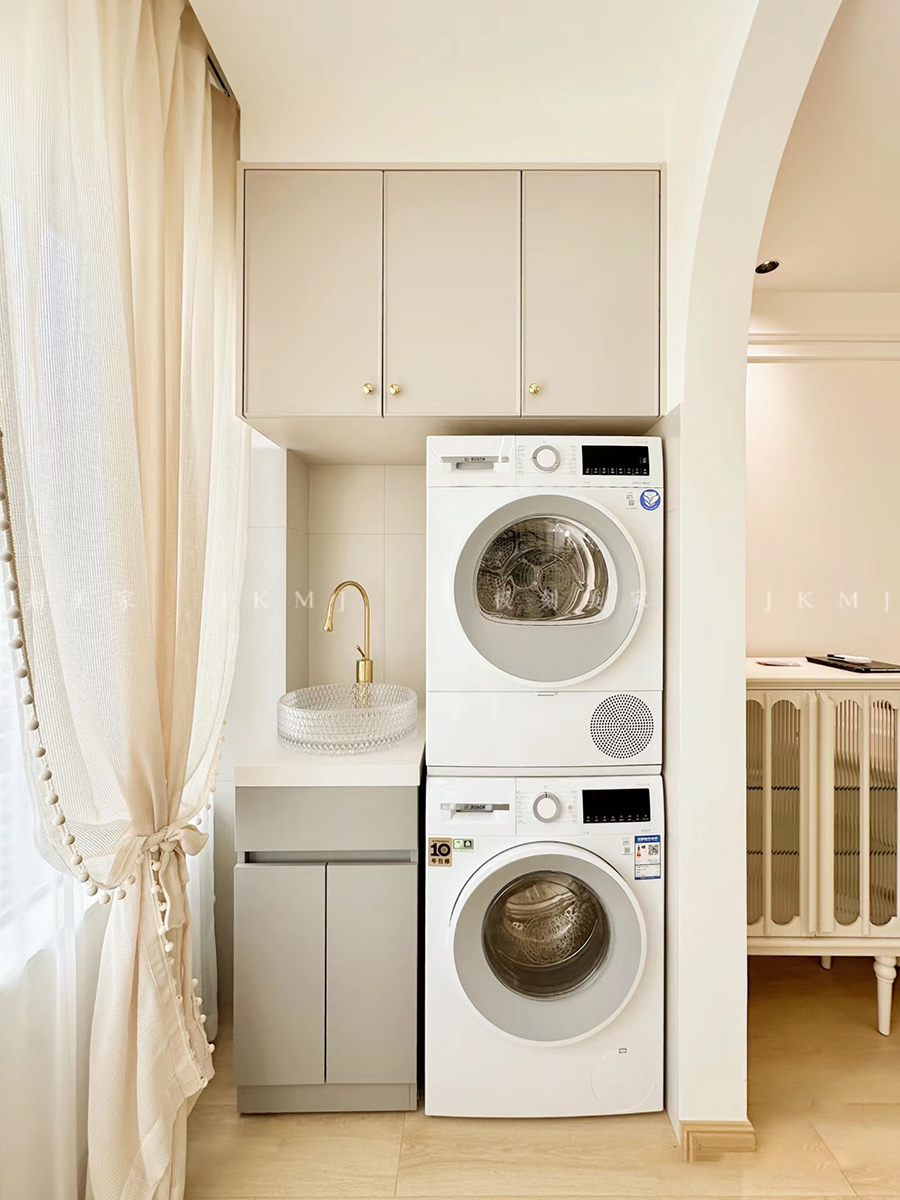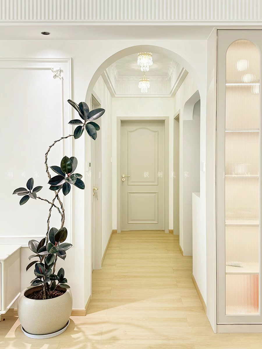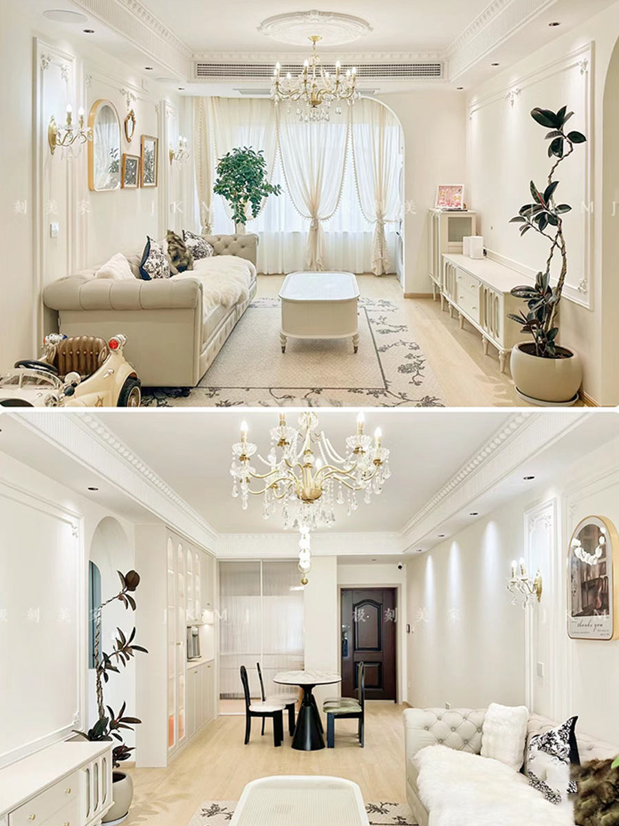 全屋以奶油白為基礎(chǔ)色調(diào),搭配法式吊燈、掛畫(huà),整體更有氛圍感