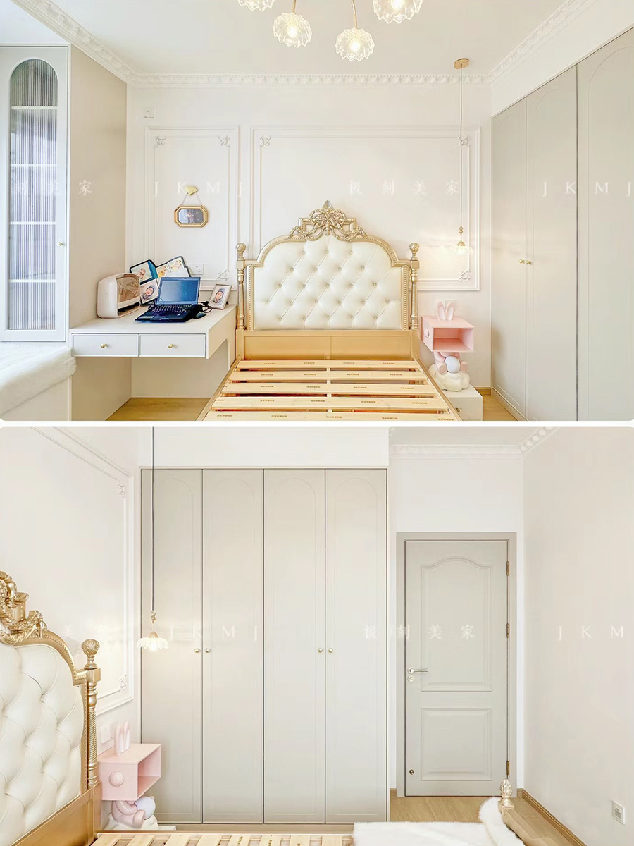 臥室延用整體風(fēng)格,床頭做pu線條,更有法式的優(yōu)雅與浪漫