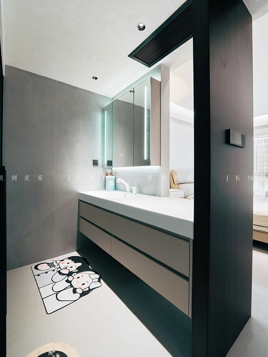 主臥做滿墻衣柜,用浴室柜做隔斷設計