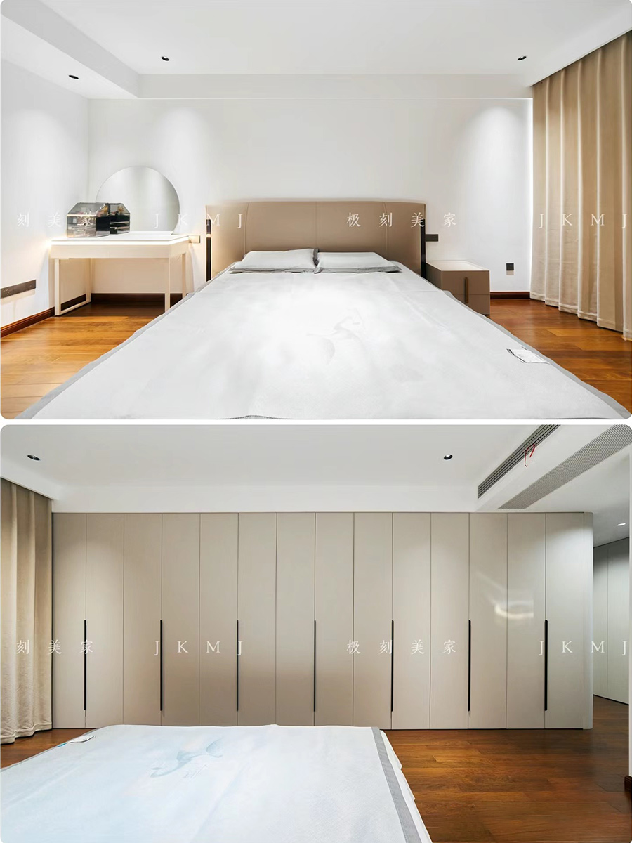 主臥利用空間動(dòng)線做滿墻衣柜,充分利用空間做收納