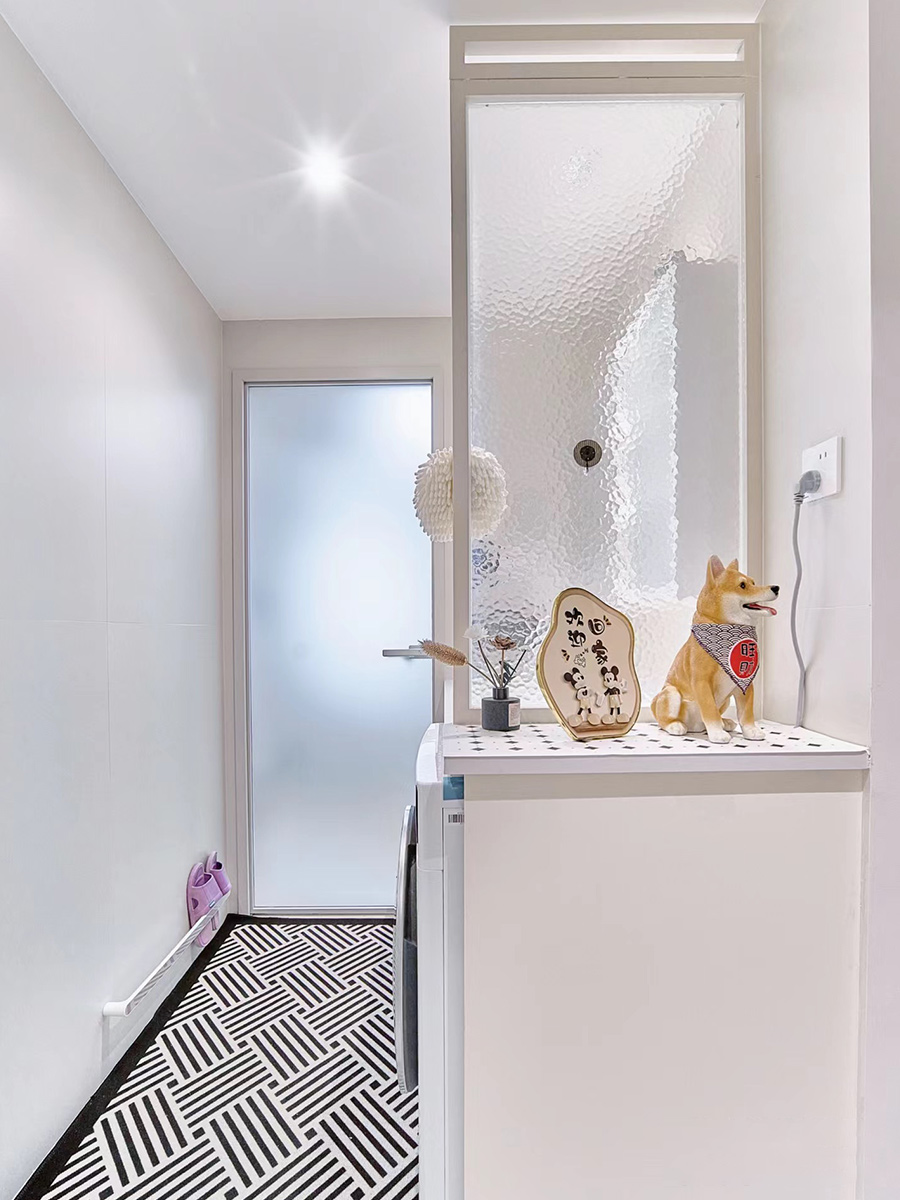 進門映入眼前的是弧形門洞,弱化尖銳棱角,空間視覺柔和,藝術感真的被狠狠拿捏了