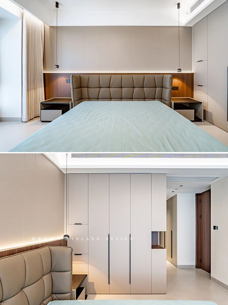 全房門墻柜一體,整體色調(diào)統(tǒng)一和諧,搭配現(xiàn)代風(fēng)格軟裝家具,耐看又耐用。