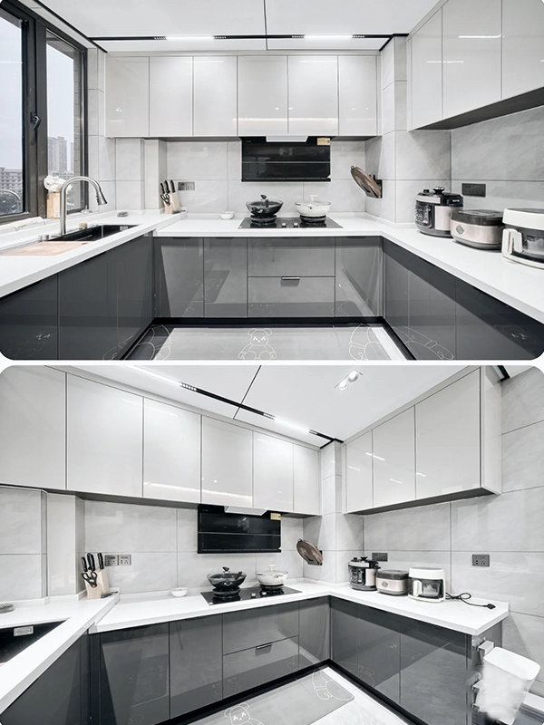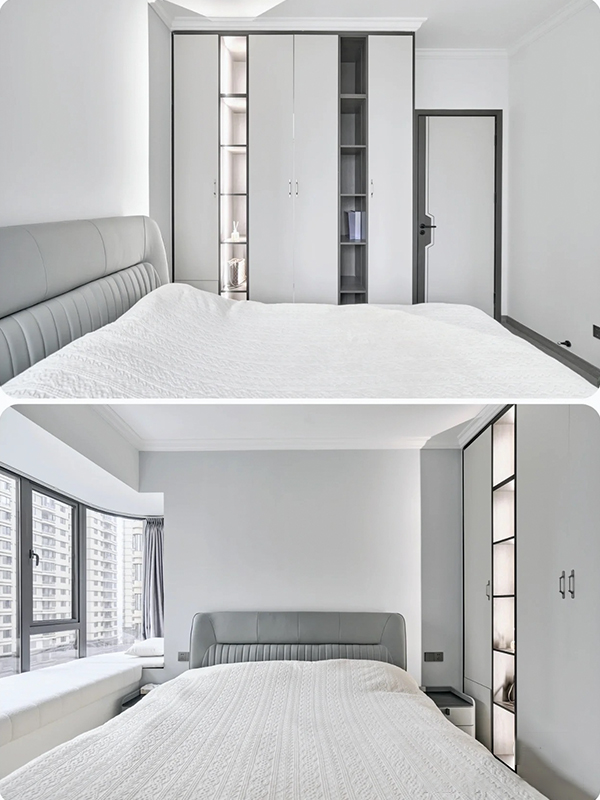 全房共定制了12個(gè)柜子,柜體采用足18厚杉木芯板,柜門采用LSB板PET膚感柜門,一門到頂,五金使用原裝進(jìn)口的百隆五金