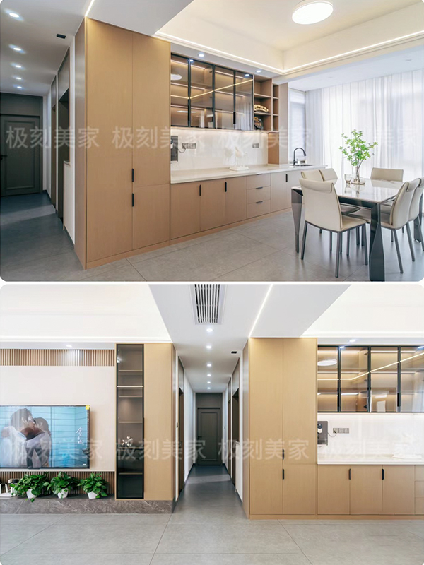 全屋高端定制:柜體板材18厚杉木實(shí)芯板,柜門有pet膚感、高光、超晶、五金使用原裝進(jìn)口奧地利百隆五金