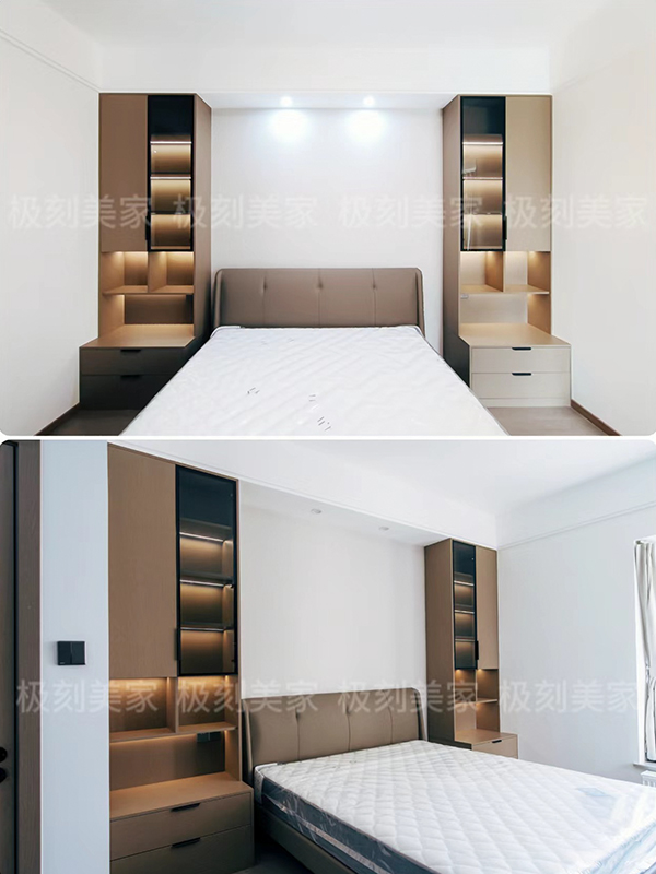 定制床頭收納柜,搭配玻璃門窗,減少厚重感