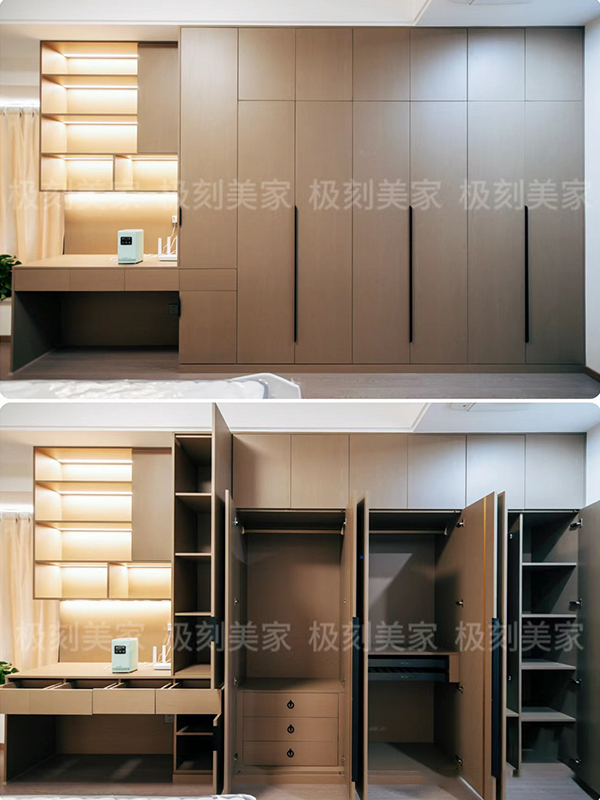 臥室柜門柜體都采用布里奇橡木,做到同款同色