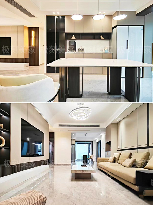 3、電視背景柜和餐邊柜同款同色同造型,整體性get