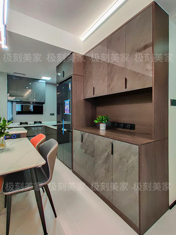 全屋高端定制:柜體板材18厚杉木實芯板,柜門有pet膚感、高光、超晶、五金使用原裝進口奧地利百隆五金