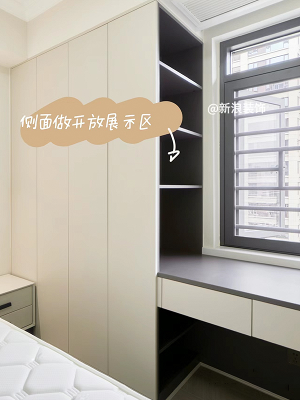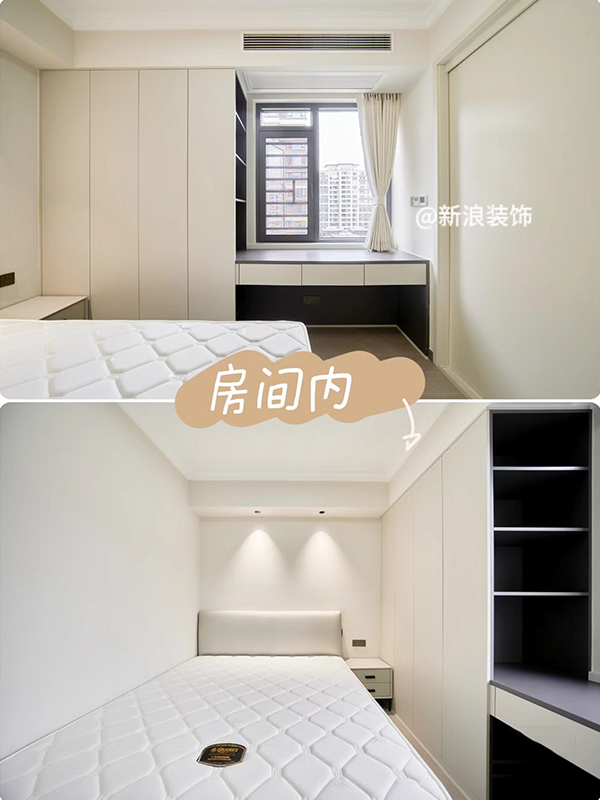 1?、電視背景墻靠陽(yáng)臺(tái)位置做隱形門(mén),平時(shí)進(jìn)入家政陽(yáng)臺(tái)以及次臥都由這個(gè)位置進(jìn)入。4?、全房衣柜、護(hù)墻板、房門(mén)、門(mén)套都做到高端定制同色同造型同材質(zhì),效果更高端。