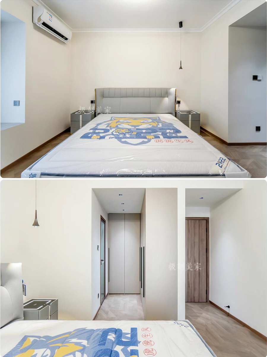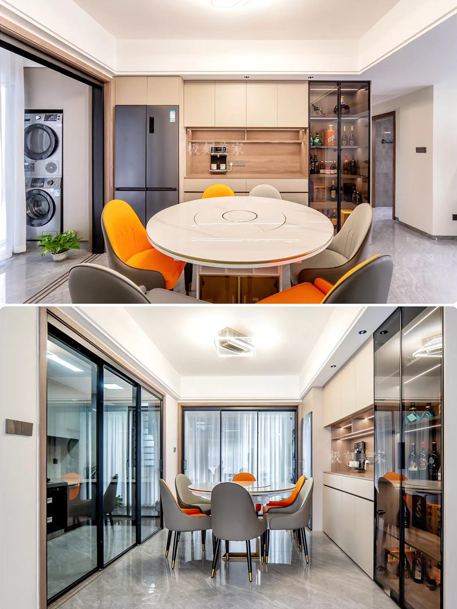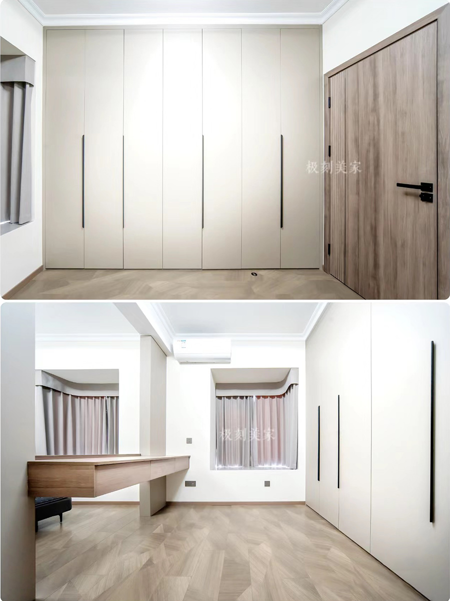 全屋高端定制:柜體板材18厚杉木實(shí)芯板,柜門(mén)有pet膚感、高光、超晶、五金使用原裝進(jìn)口奧地利百隆五金