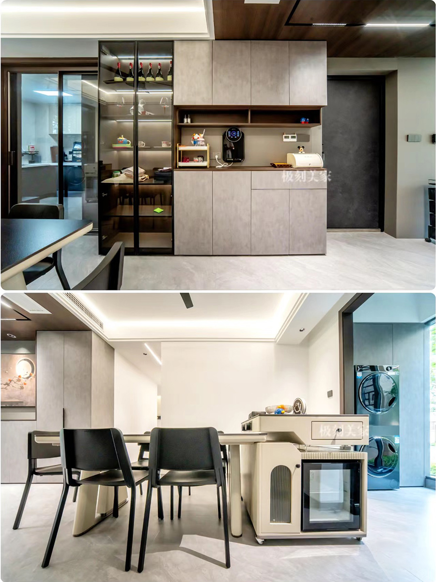 餐邊柜兩種材質(zhì)搭配,增加層次感