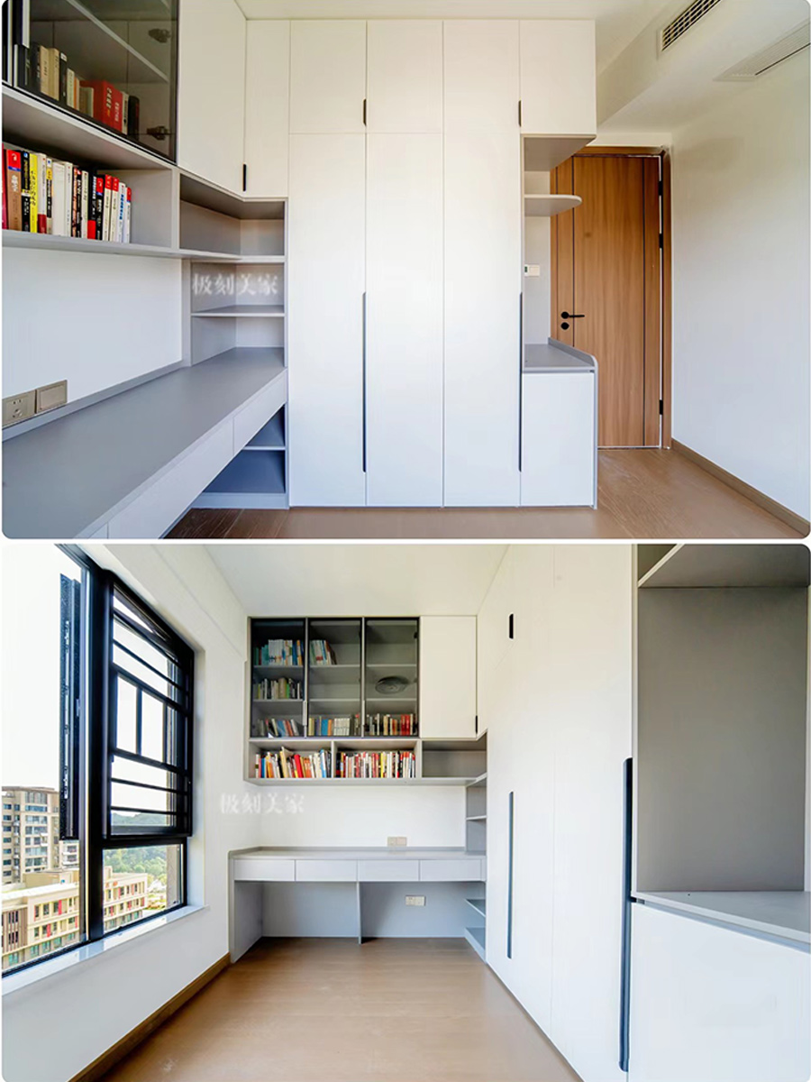 書桌與書柜一體化設(shè)計(jì),極大的利用空間