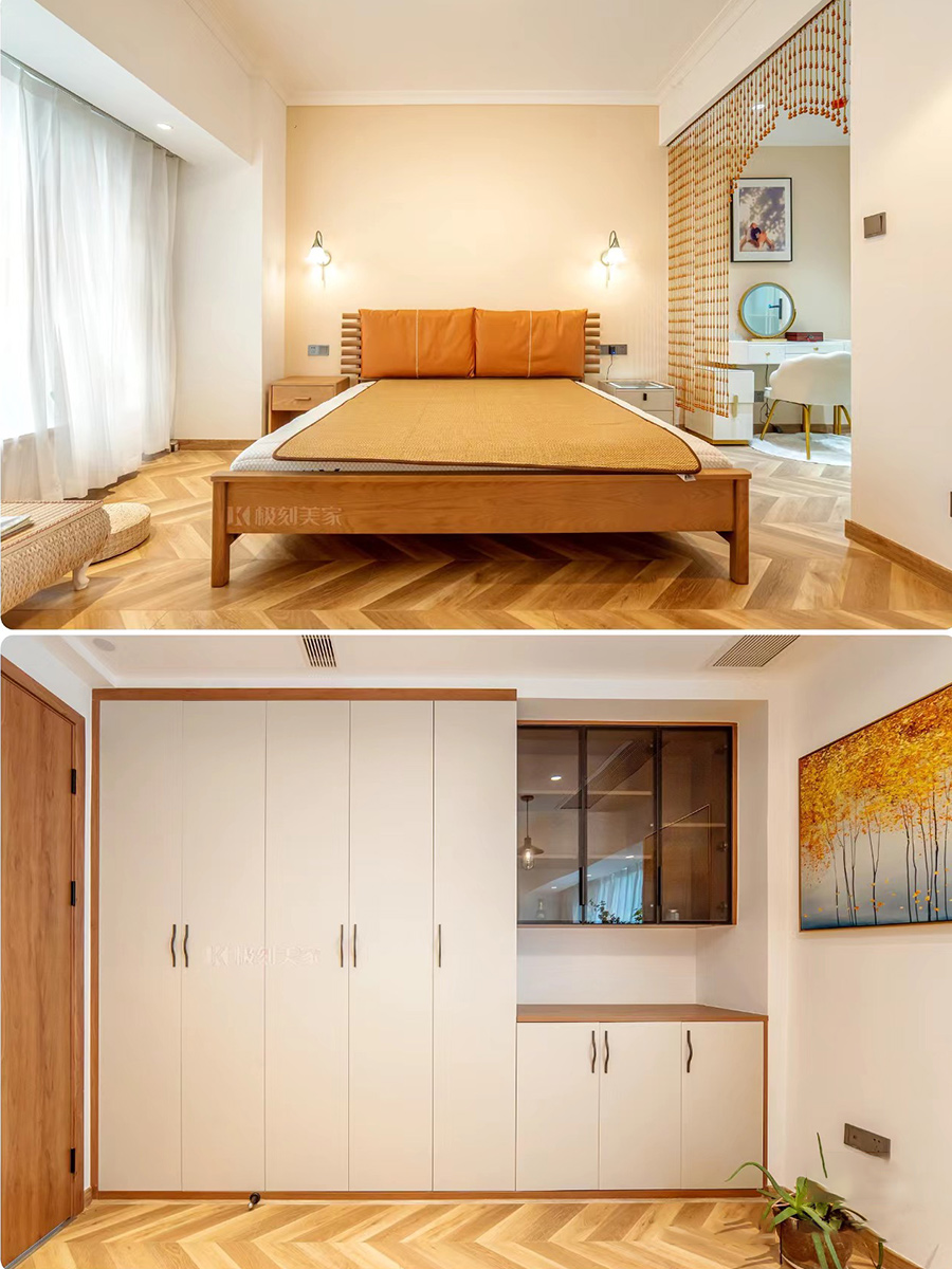 臥室柜搭配玻璃柜門,更有層次感,軟裝與掛畫的搭配,溫馨又舒適