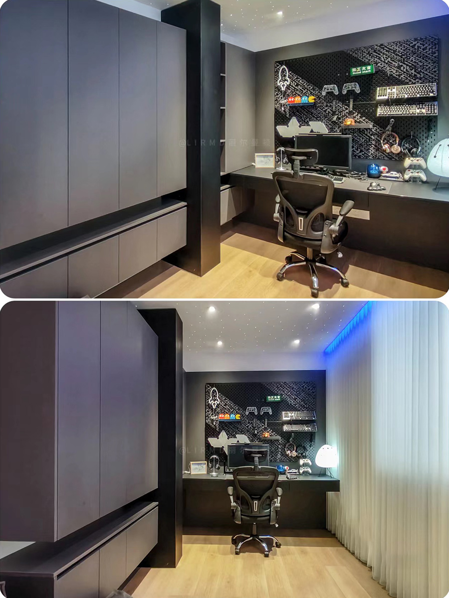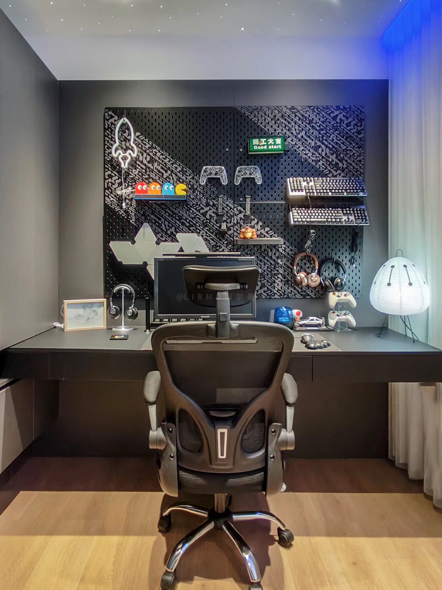 燈光是整個(gè)電競房的重點(diǎn),一盞足夠亮且舒適的燈,或者選擇一些酷炫的裝飾品,好的游戲氛圍也是同樣的重要~