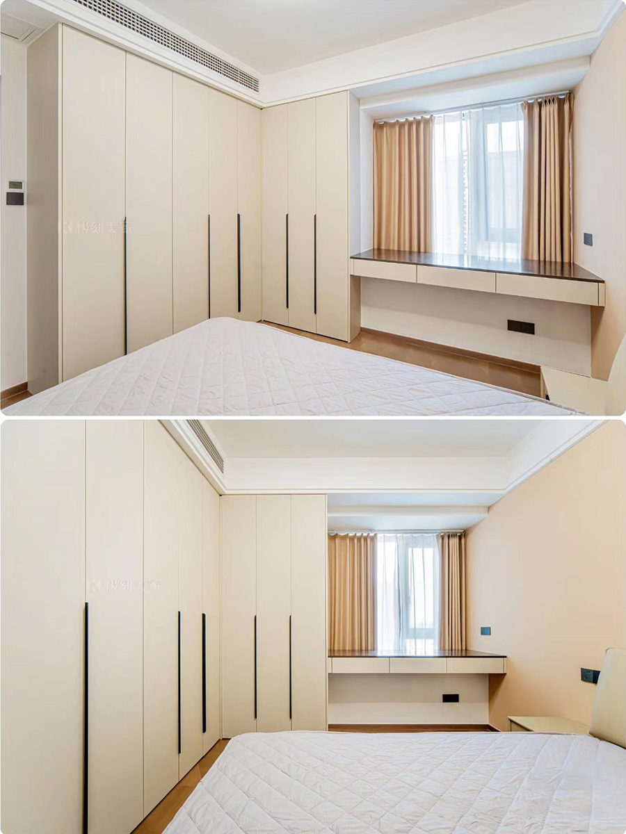 全屋高端定制:柜體板材18厚杉木實芯板,柜門有pet膚感、高光、超晶、五金使用原裝進口奧地利百隆五金
