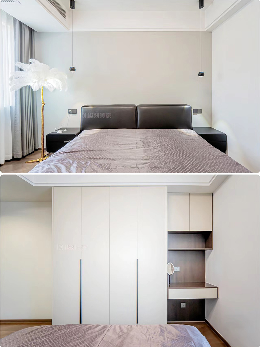 臥室衣柜采用書柜一體化設(shè)計,更大限度的利用空間