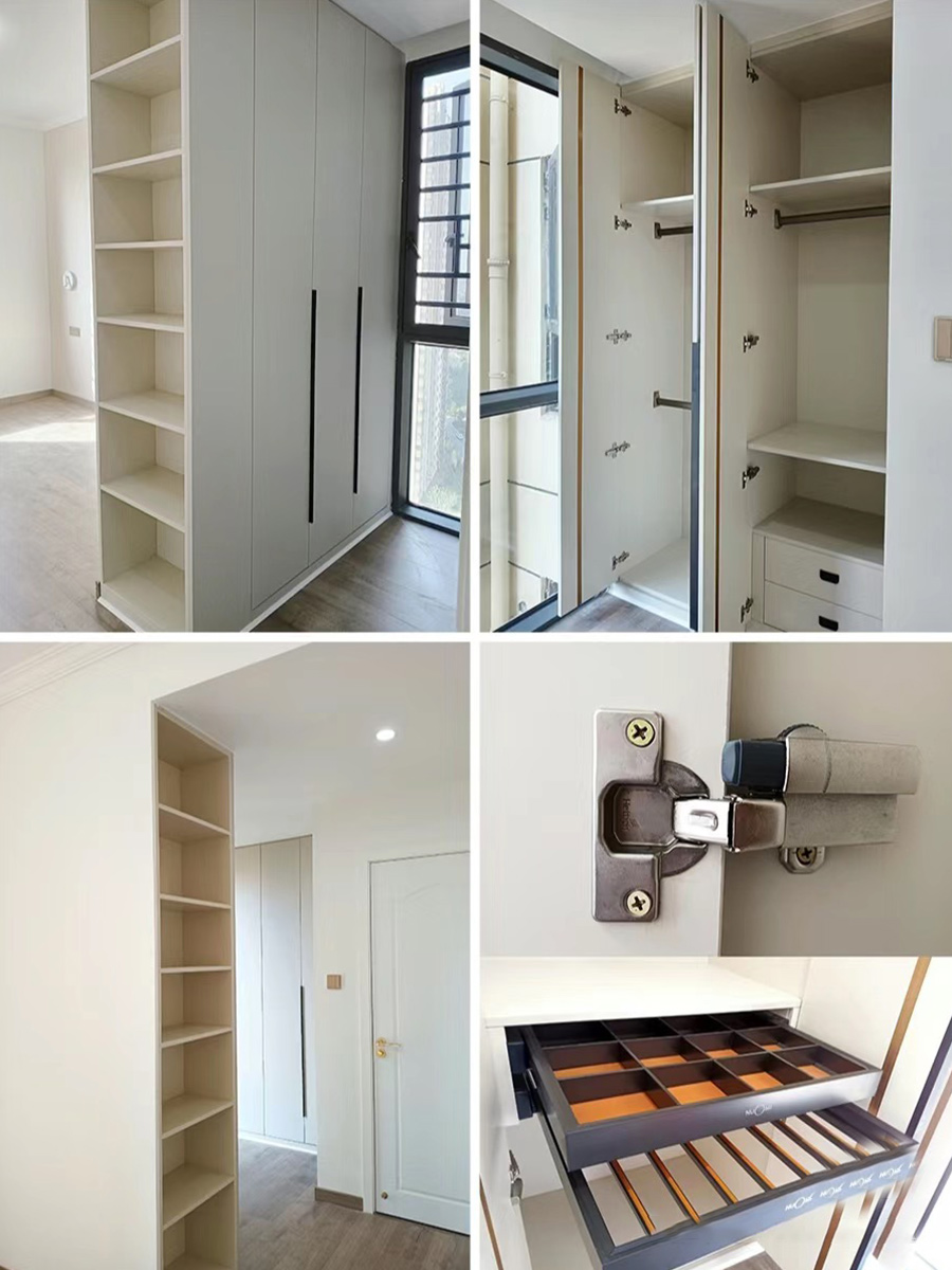 含入戶柜、電視柜、餐邊柜、陽(yáng)臺(tái)吊柜、主臥衣柜*2、兒童房衣柜、次臥衣柜、浴室柜