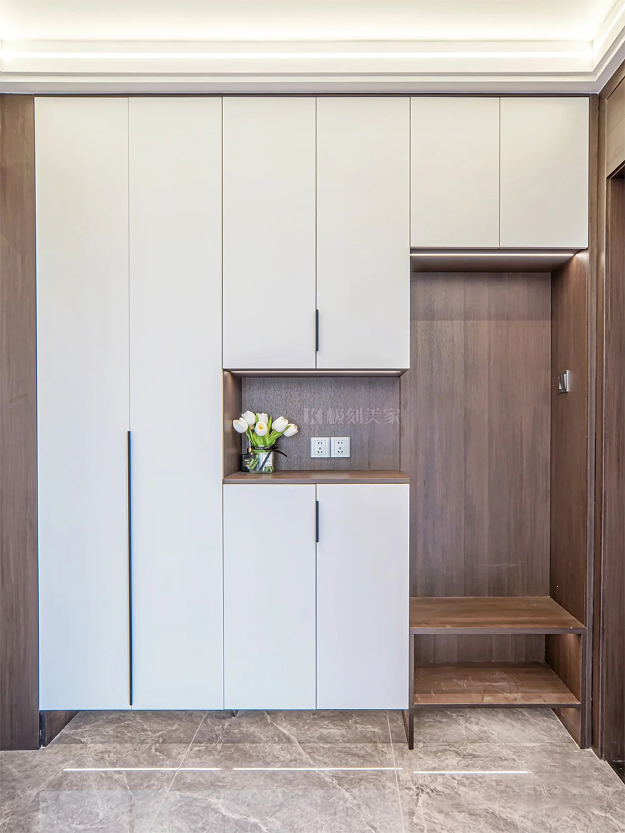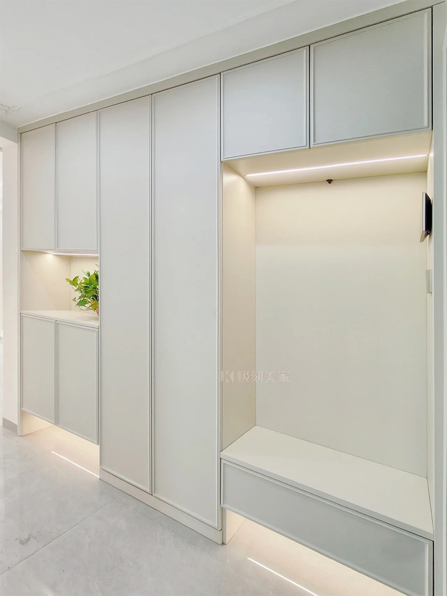 鞋柜中部和底部留空或穿插設(shè)計(jì),增添呼吸空間