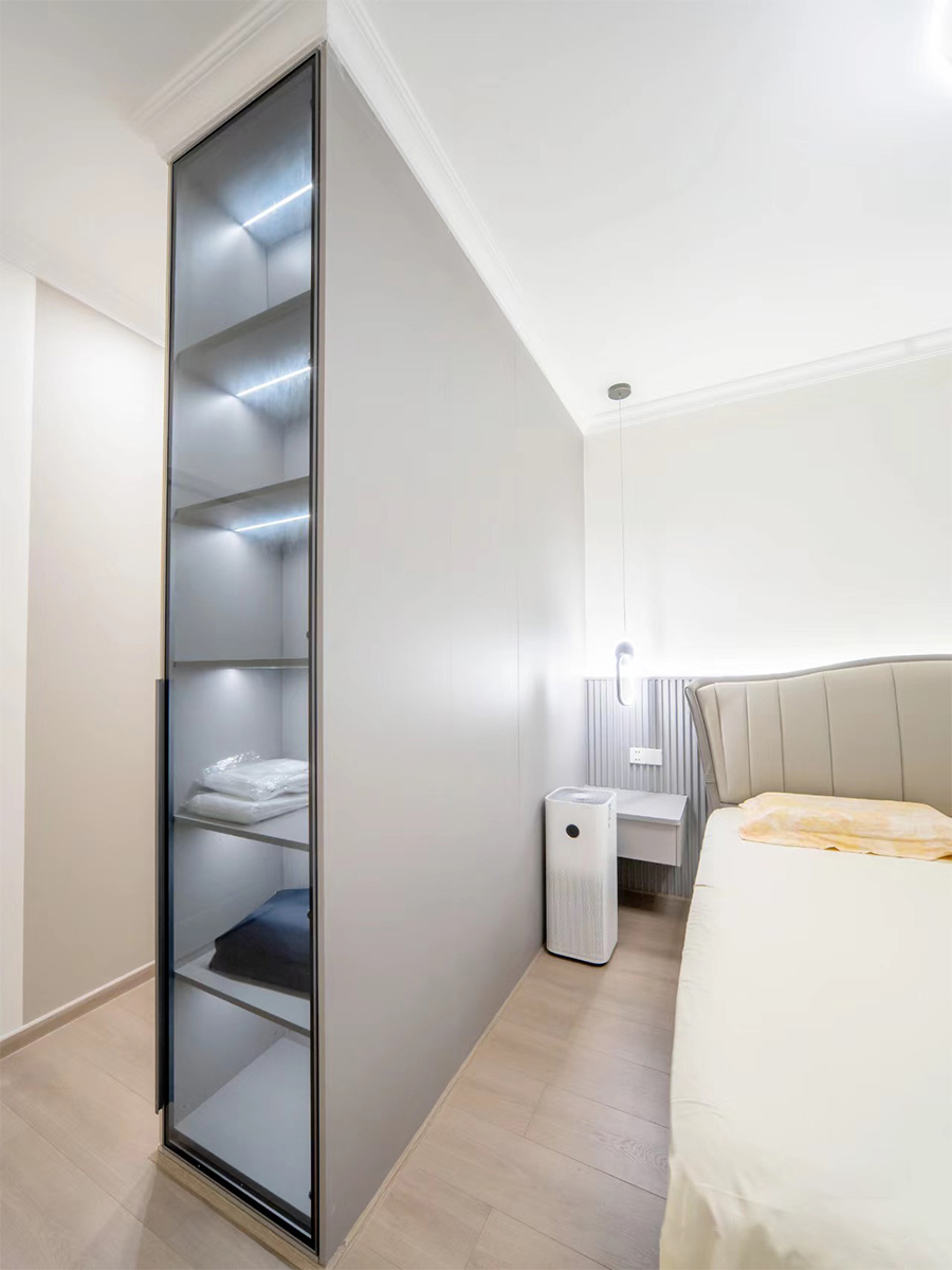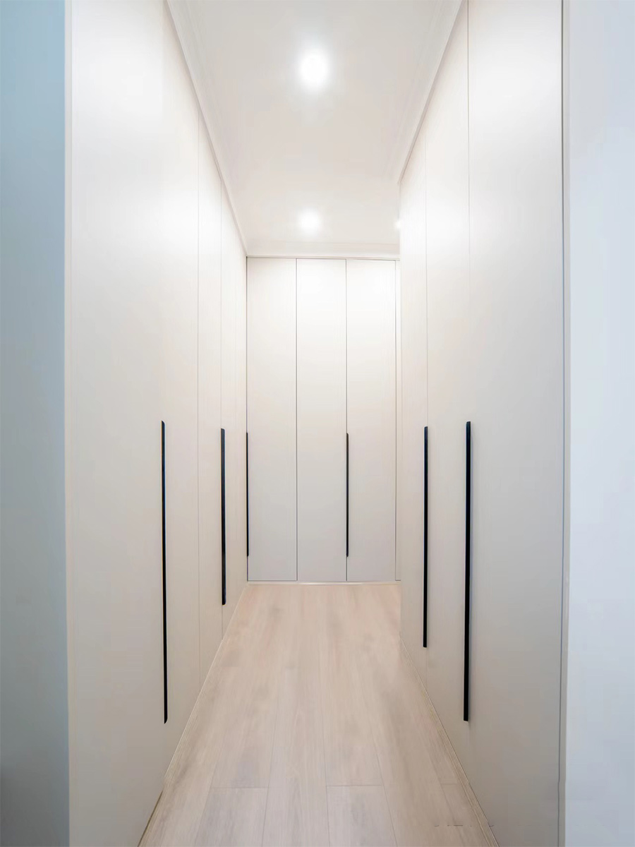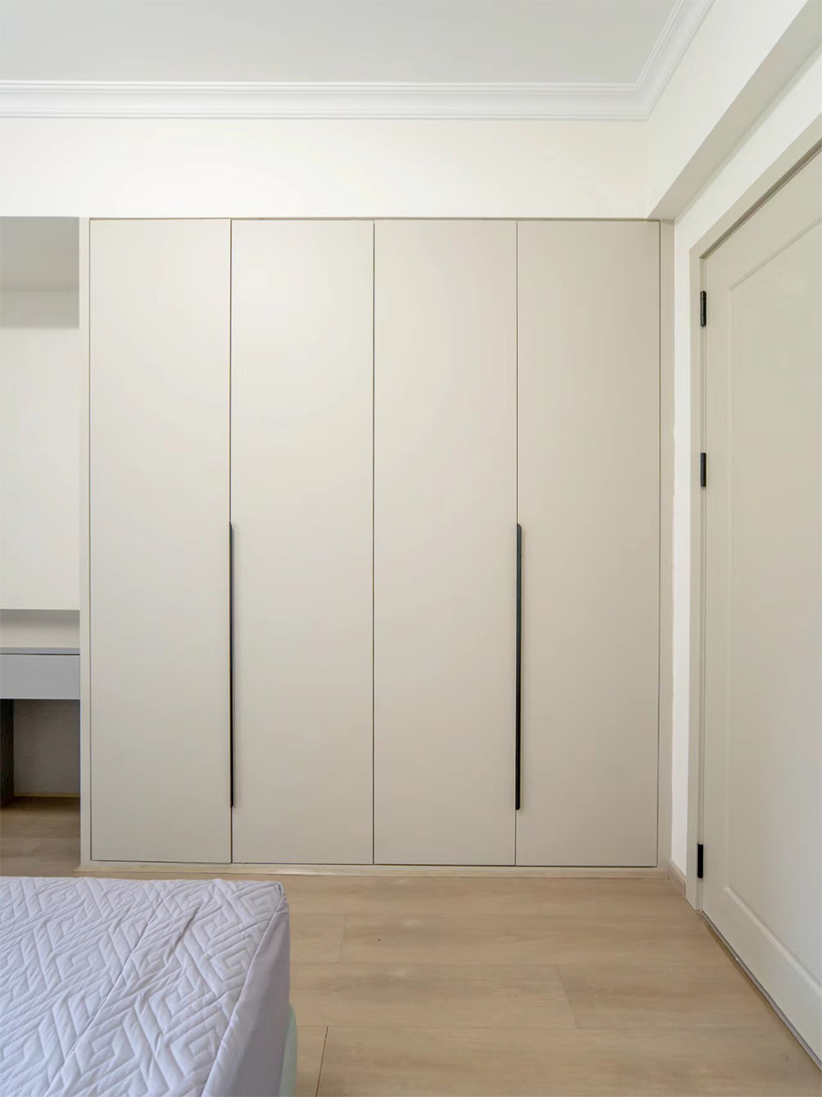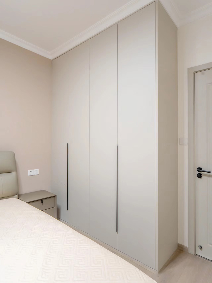 柜體采用18厚杉木芯板,柜門采用歐松板PET膚感柜門,一門到頂,五金使用原裝進(jìn)口的百隆五金