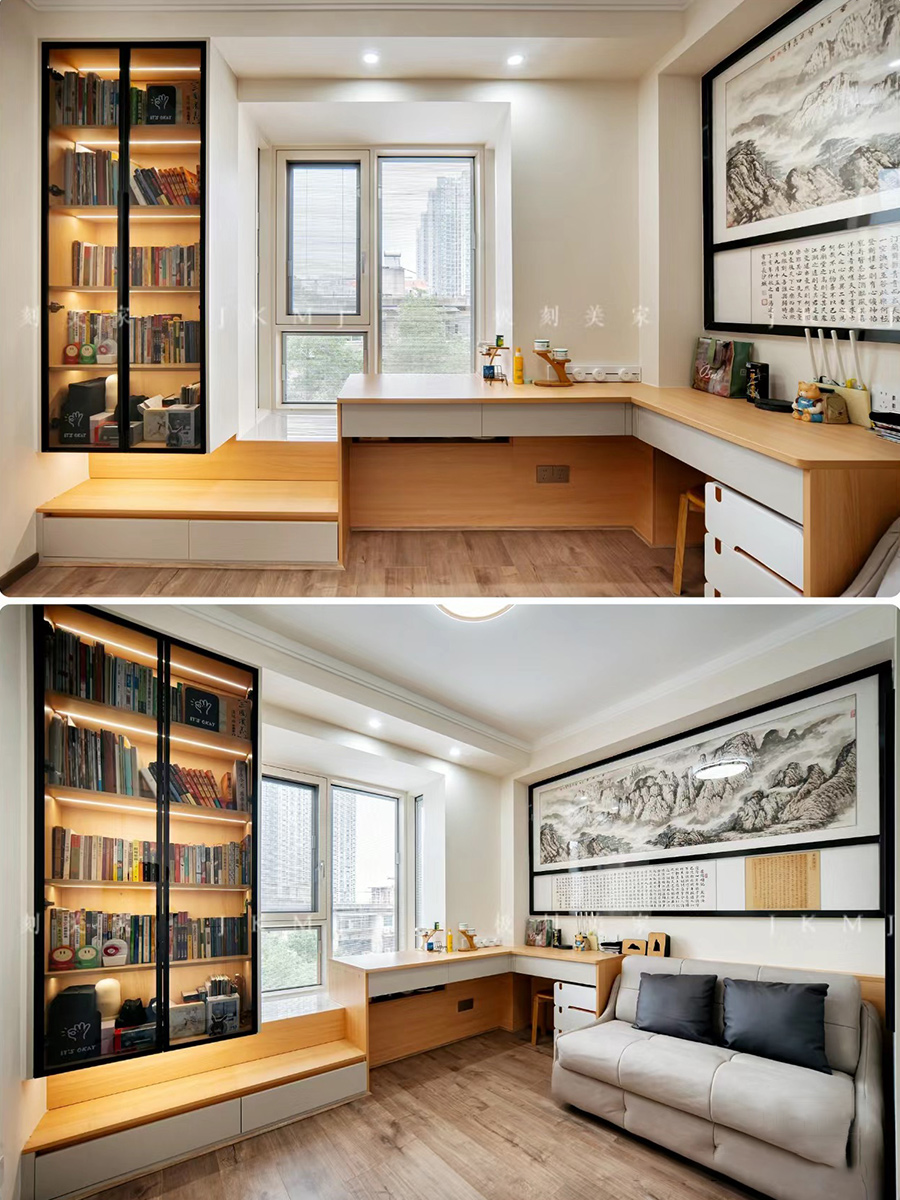 書房運用玻璃柜門的設計,美觀的同時實用感也很絕
