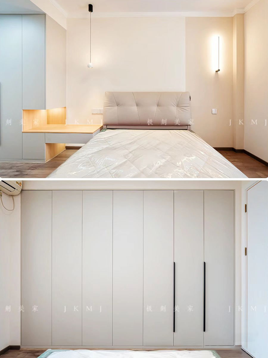 全屋高端定制:柜體板材18厚杉木實芯板,柜門有pet膚感、高光、超晶、五金使用原裝進口奧地利百隆五金