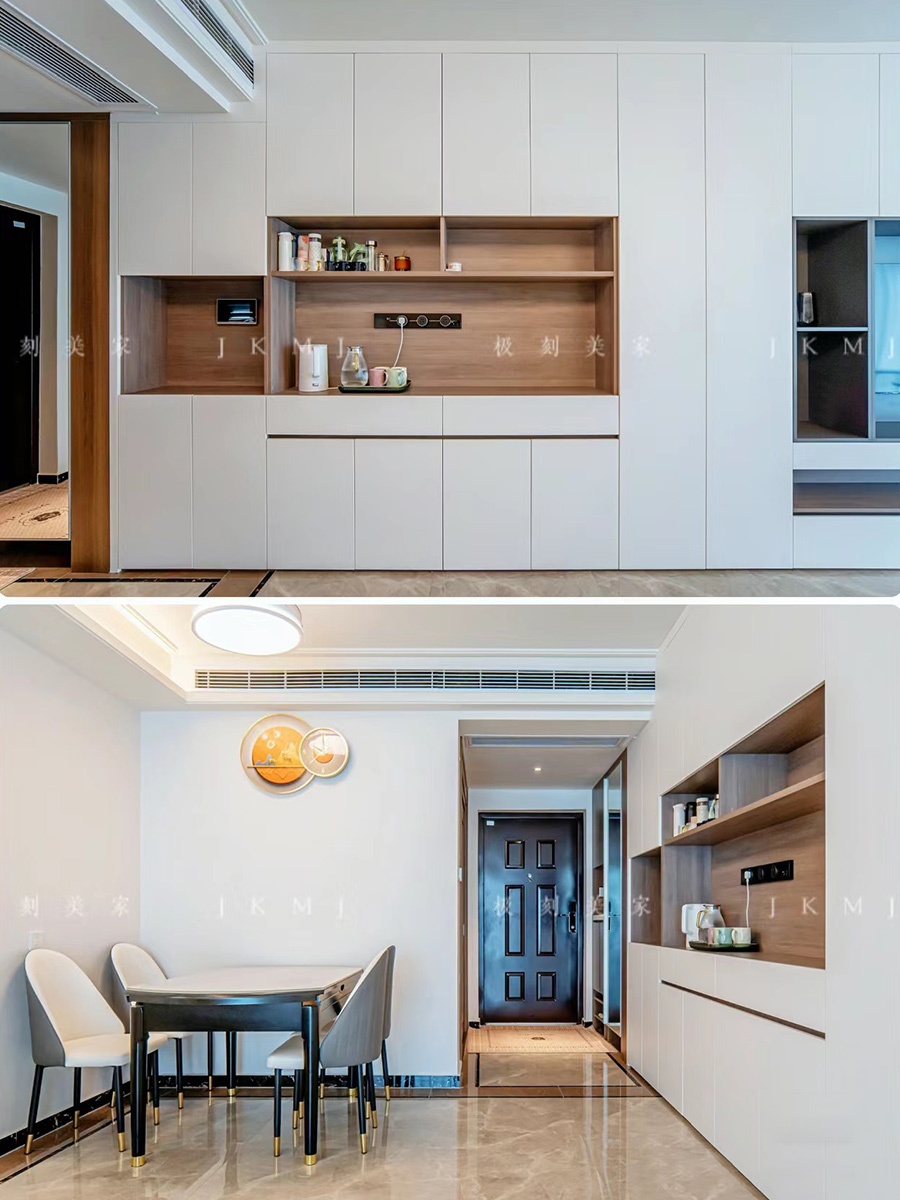 入戶柜、餐邊柜、電視柜一體化設(shè)計,顏值與實用并存