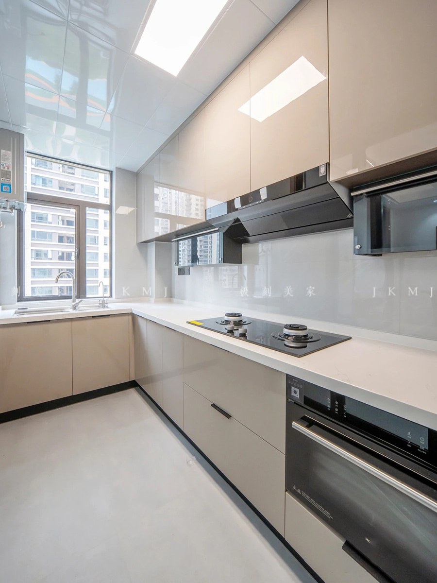 全屋高端定制:柜體板材18厚杉木實(shí)芯板,柜門有pet膚感、高光、超晶、五金使用原裝進(jìn)口奧地利百隆五金