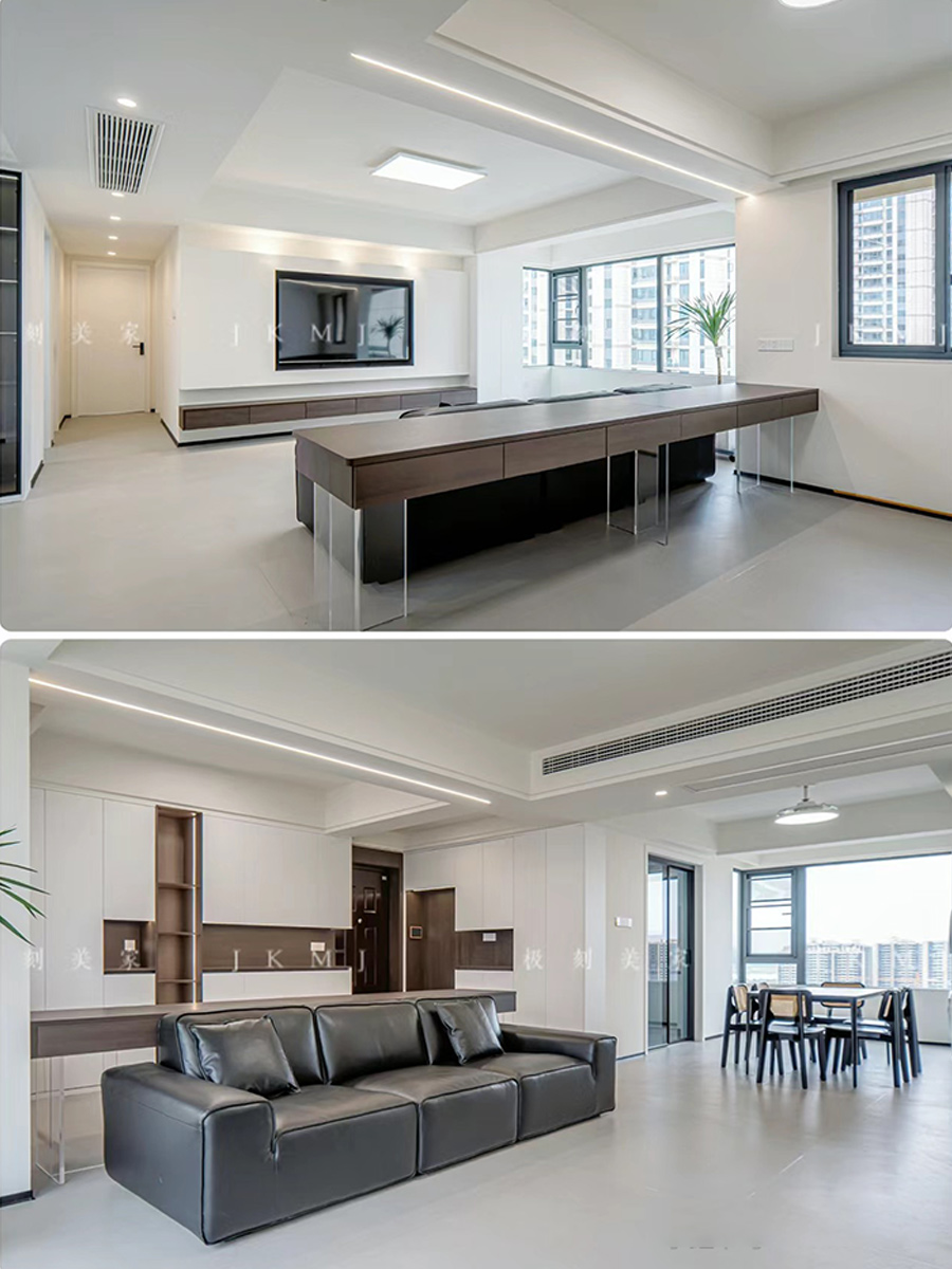 全屋高端定制:柜體板材18厚杉木實(shí)芯板,柜門(mén)有pet膚感、高光、超晶、五金使用原裝進(jìn)口奧地利百隆五金