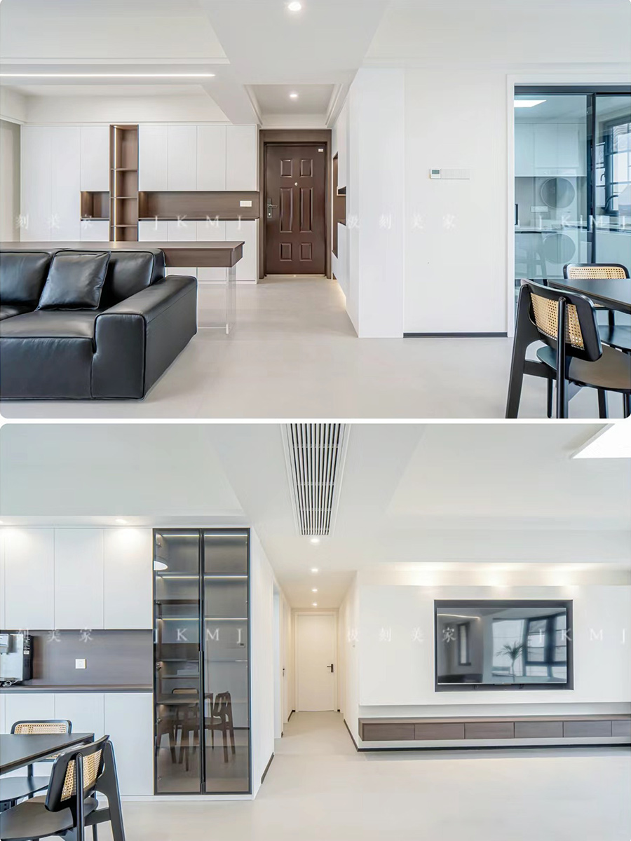 整體以黑白色為主,白色柜門(mén)搭配深色柜體,整體統(tǒng)一