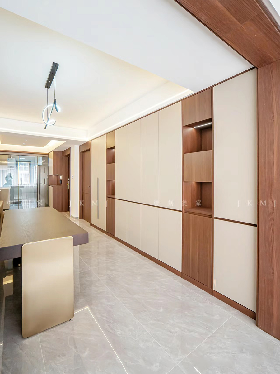 全屋高端定制:柜體板材18厚杉木實(shí)芯板,柜門(mén)有pet膚感、高光、超晶、五金使用原裝進(jìn)口奧地利百隆五金