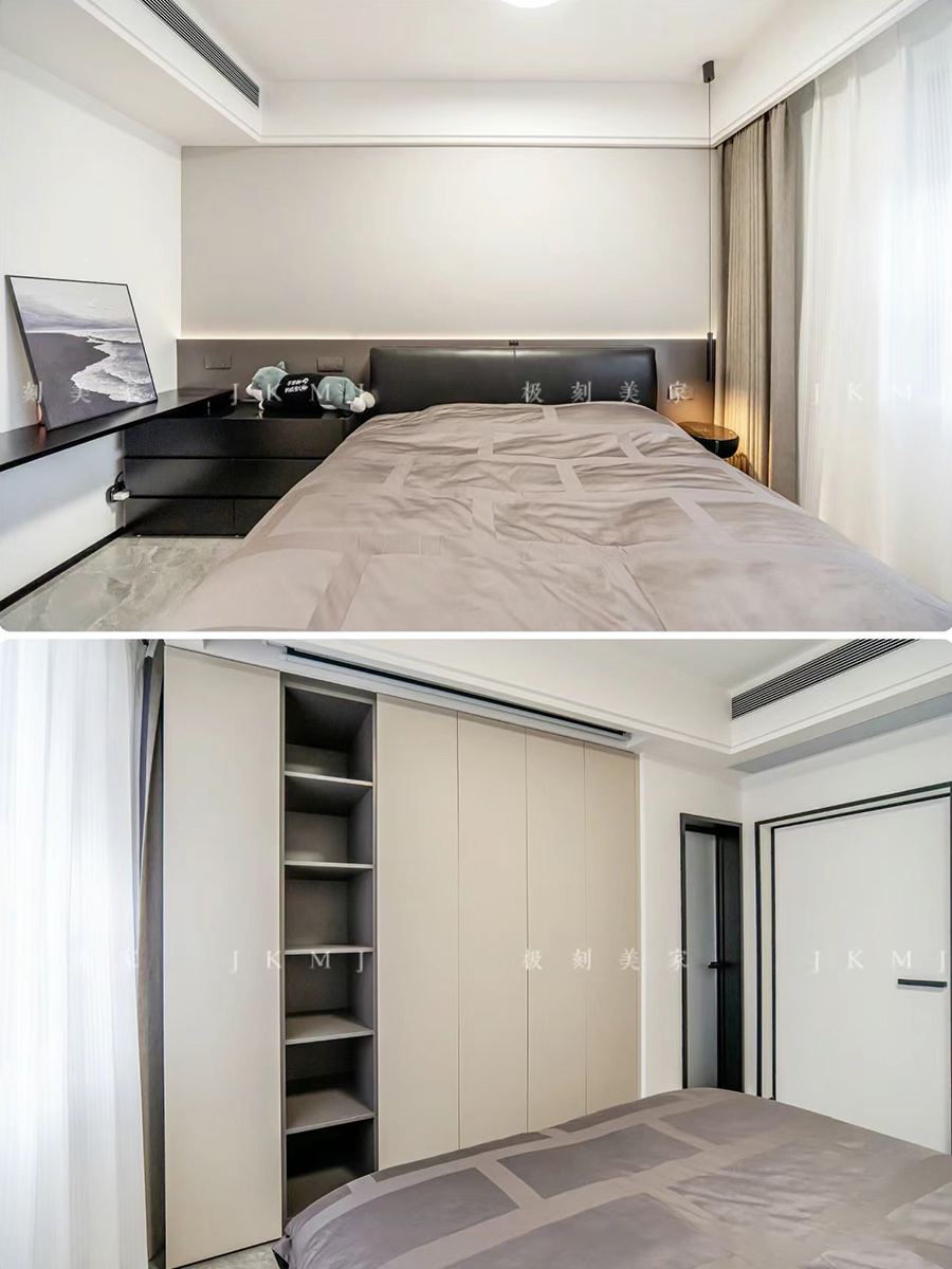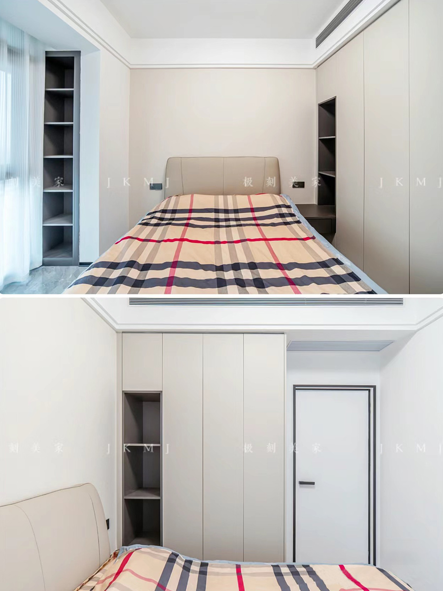 臥室延用整體色調(diào),做一門到頂柜門,簡(jiǎn)單又高級(jí)