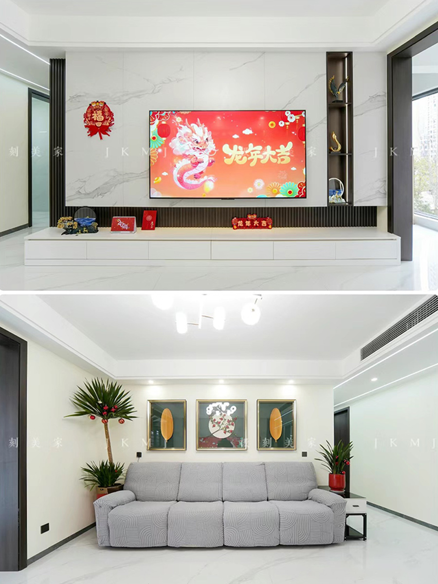 一字型電視收納柜+懸浮電視背景墻,顏值收納兩不誤