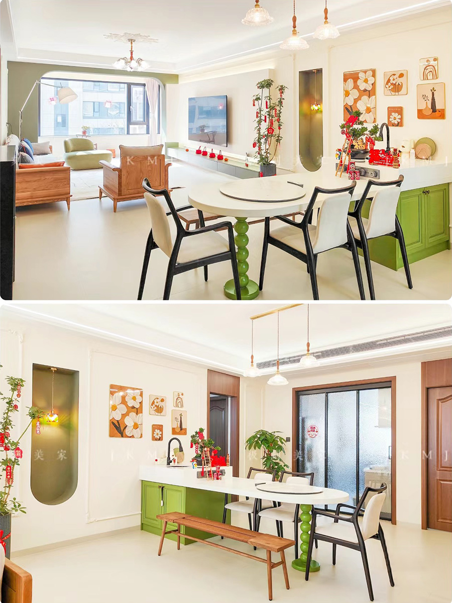 全屋巧妙運(yùn)用奶油色調(diào),搭配復(fù)古風(fēng)家具