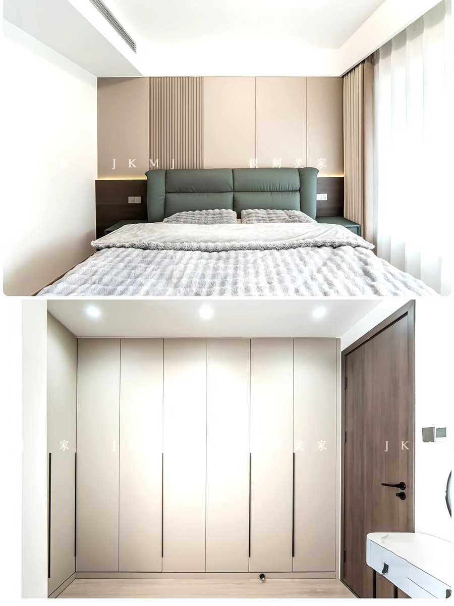 全屋高端定制:柜體板材18厚杉木實(shí)芯板,柜門有pet膚感、高光、超晶,五金使用原裝進(jìn)口奧地利百隆五金