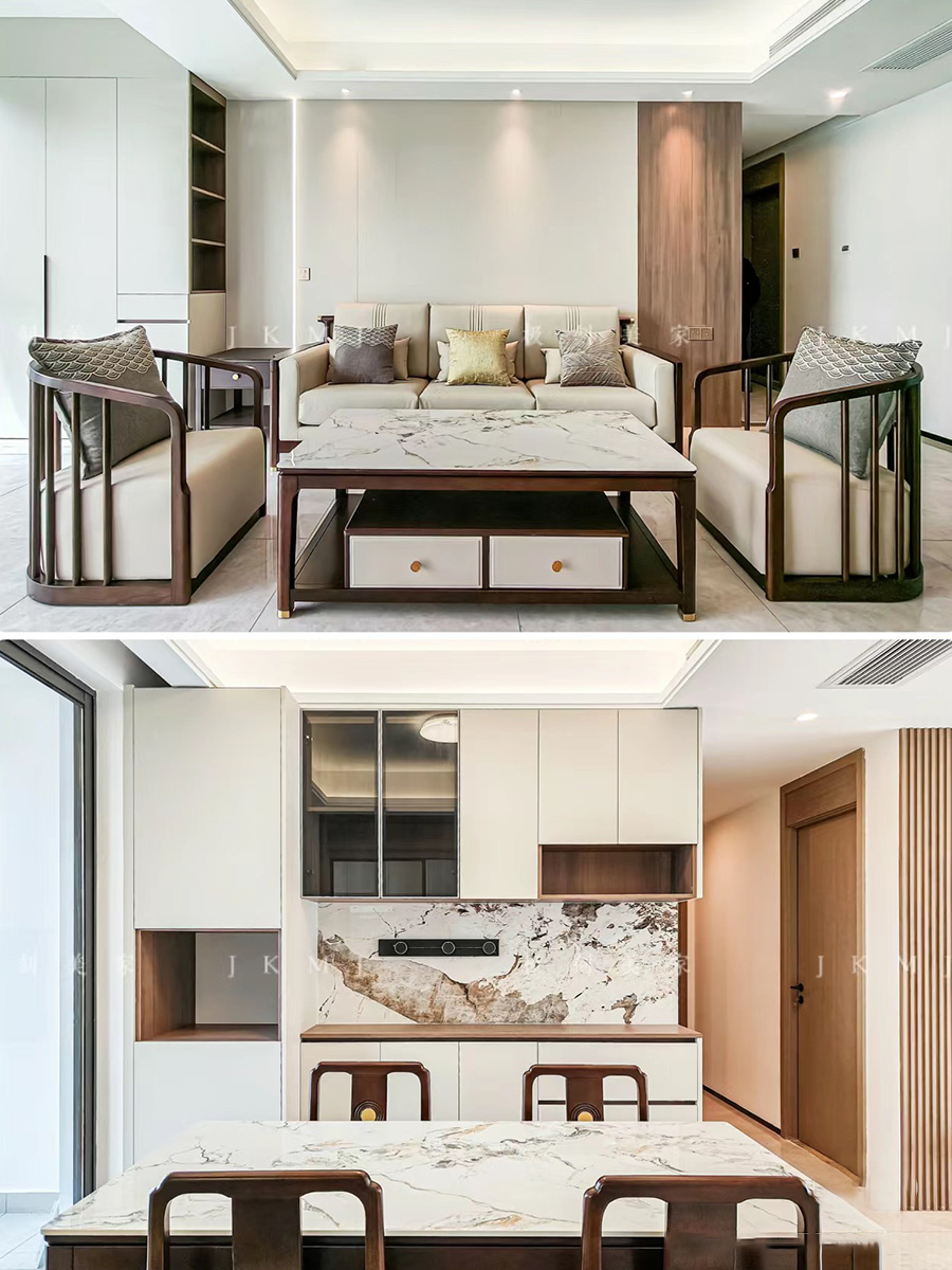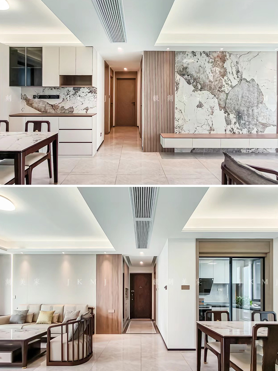 電視背景墻及餐邊柜鏤空用巖板代替墻板,整體大氣簡約