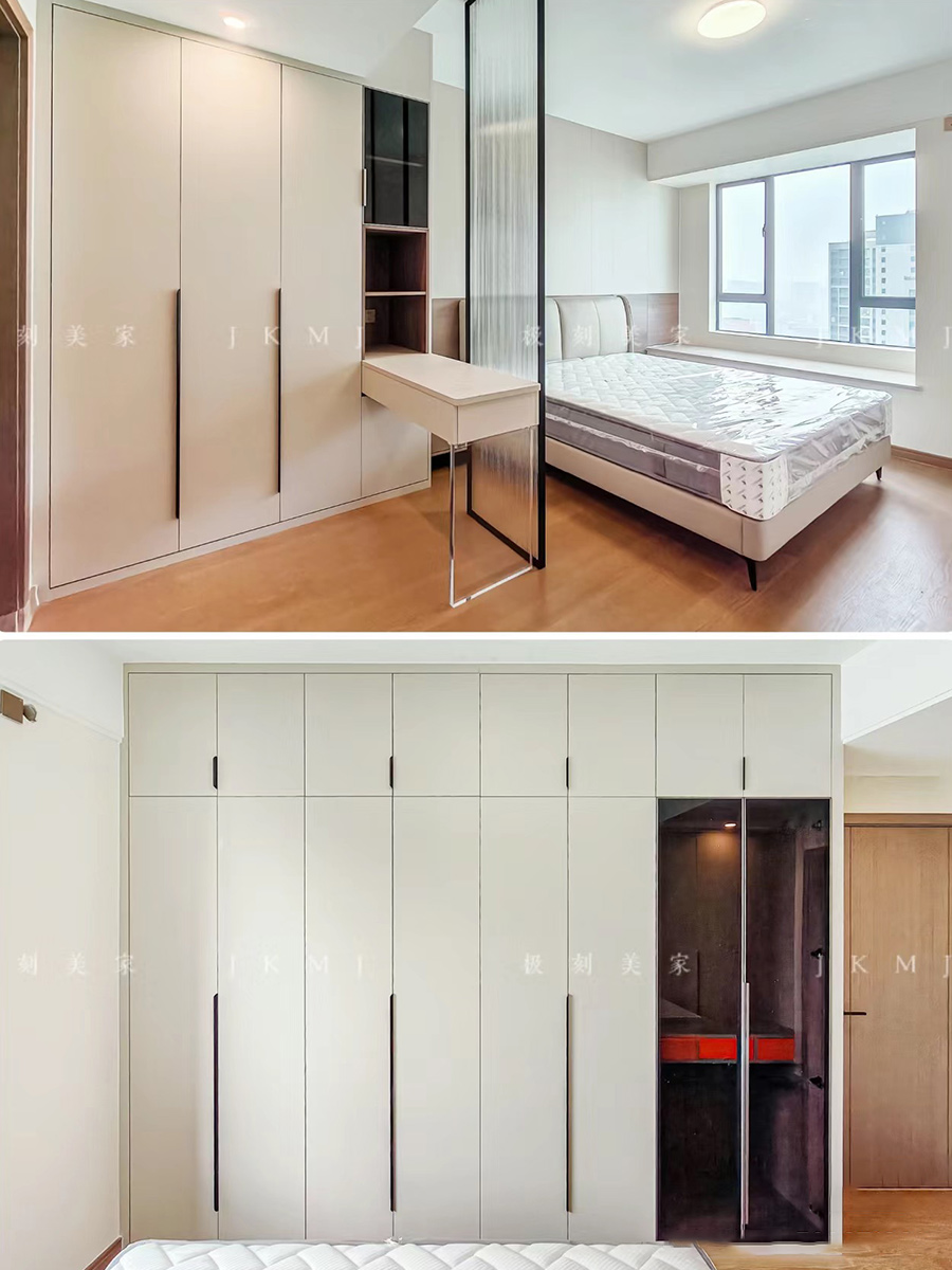 全屋高端定制:柜體板材18厚杉木實(shí)芯板,柜門有pet膚感、高光、超晶,五金使用原裝進(jìn)口奧地利百隆五金
