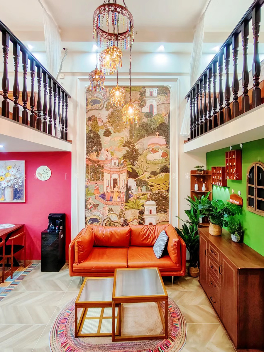 兩房中間做挑空設計,隨處可見的掛畫使整體更有藝術氣息