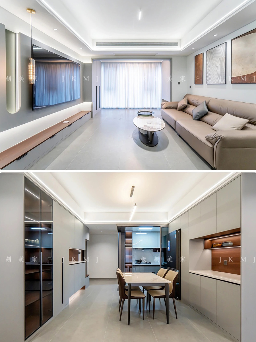 ★客廳背景墻打破定制柜的模式,將造型延伸到陽臺(tái),空間感更有聯(lián)動(dòng)性
